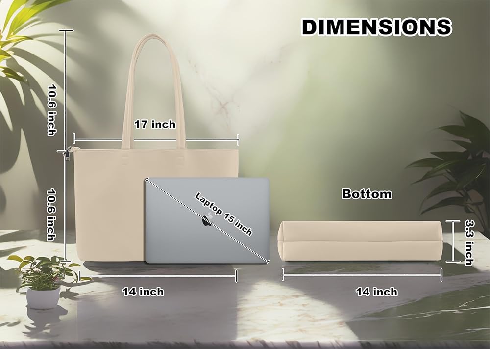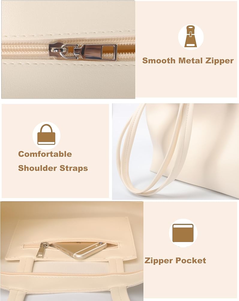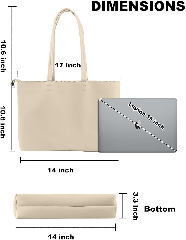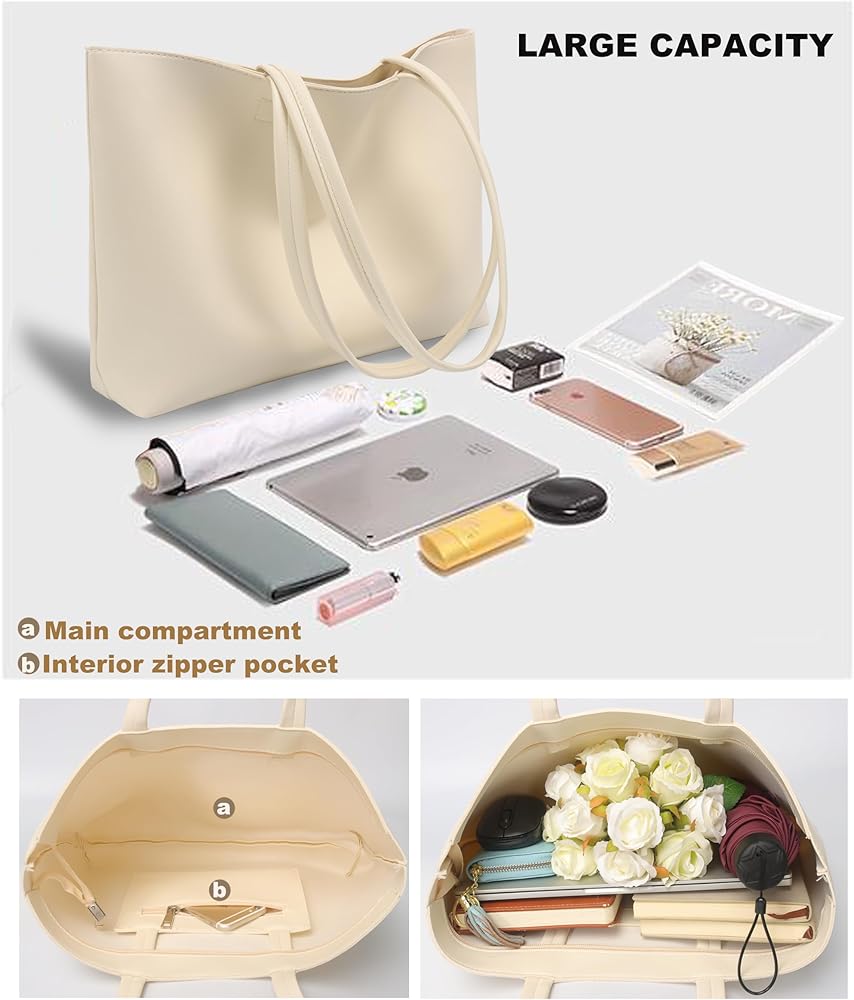 【Perfect Size & Structure】 Womens Purses Dimensions: 15.3" x 11" x 4.7". Coin Purse Dimensions: 7.8" x 4.72". This tote with zipper has 1 main compartment, 1 zipper pocket and 1 coin purse, which offers ample room for your laptop, iPad, books, bottle, magazine, keys, wallet, sunglass,and so on.