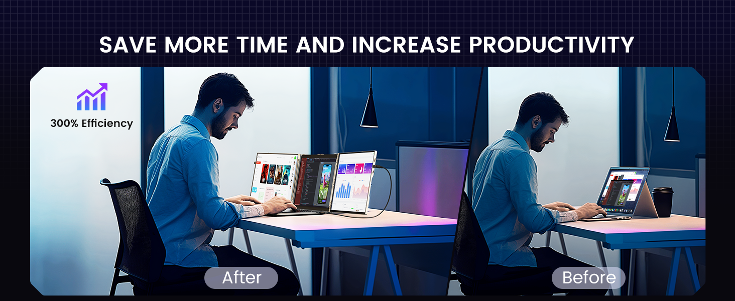 🔌 【 Widely compatible and easy to connect 】 Each monitor extender is equipped with full featured USB-C and HDMI ports, compatible with a variety of 13-16 inch laptops. Support reverse charging function to extend the battery life of your laptop. We offer a 1-year warranty and a 6-month unconditional return and refund service, making your purchase worry free.