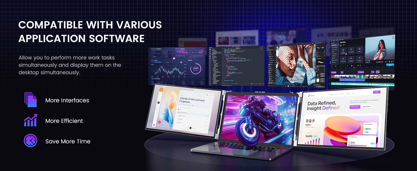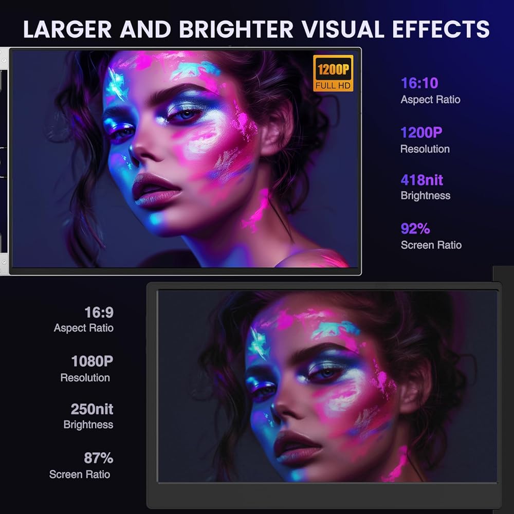 🌈 【Ultimate multitasking experience】The LIMINK LK14 laptop screen extender brings you an unprecedented level of multitasking experience. Three parallel screens allow you to easily handle complex tasks, whether it's office, creative, or entertainment, with ease. Double 14 "1200P 16:10 frameless screen, creating a 48:10 ultra wide field of view for you to see everything at a glance.
