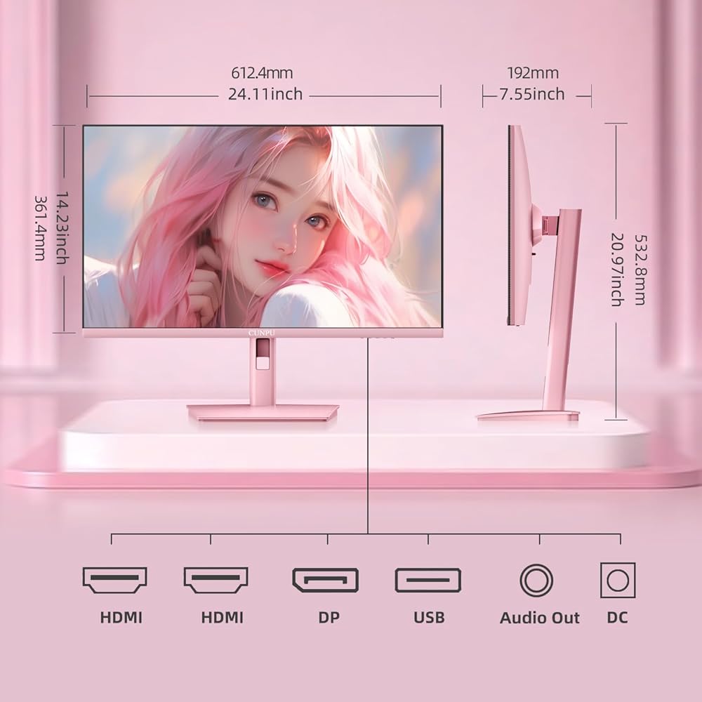 KAWAII DESIGN:The CUNPU pink computer monitor with cat ear design is a kawaii monitor that always catches the eye. The 27" curved 165Hz gaming monitor features an 1500R curved LCD screen that gives you a wider field of view while gaming, and the game is always "WINNER WINNER ,CHICKEN DINNER". This is the first choice gaming monitor for beginning female gamers.