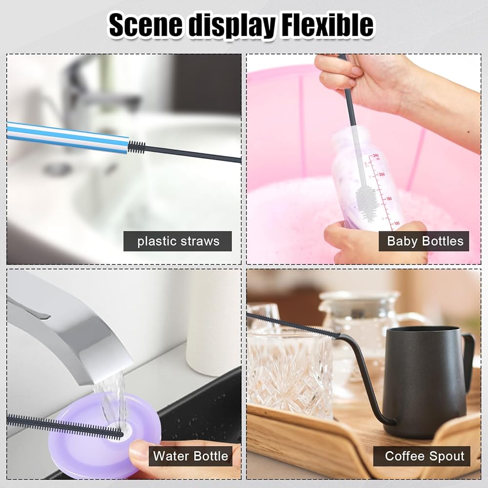 Wide Application: Our silicone straw brush is suitable for for cleaning straws and water bottles made of different materials, such as plastic, stainless steel, glass, etc; also applicable for cleaning sports bottles, coffee mugs, travel mugs, baby bottles and so on. Not applicable to wine or beer bottles.