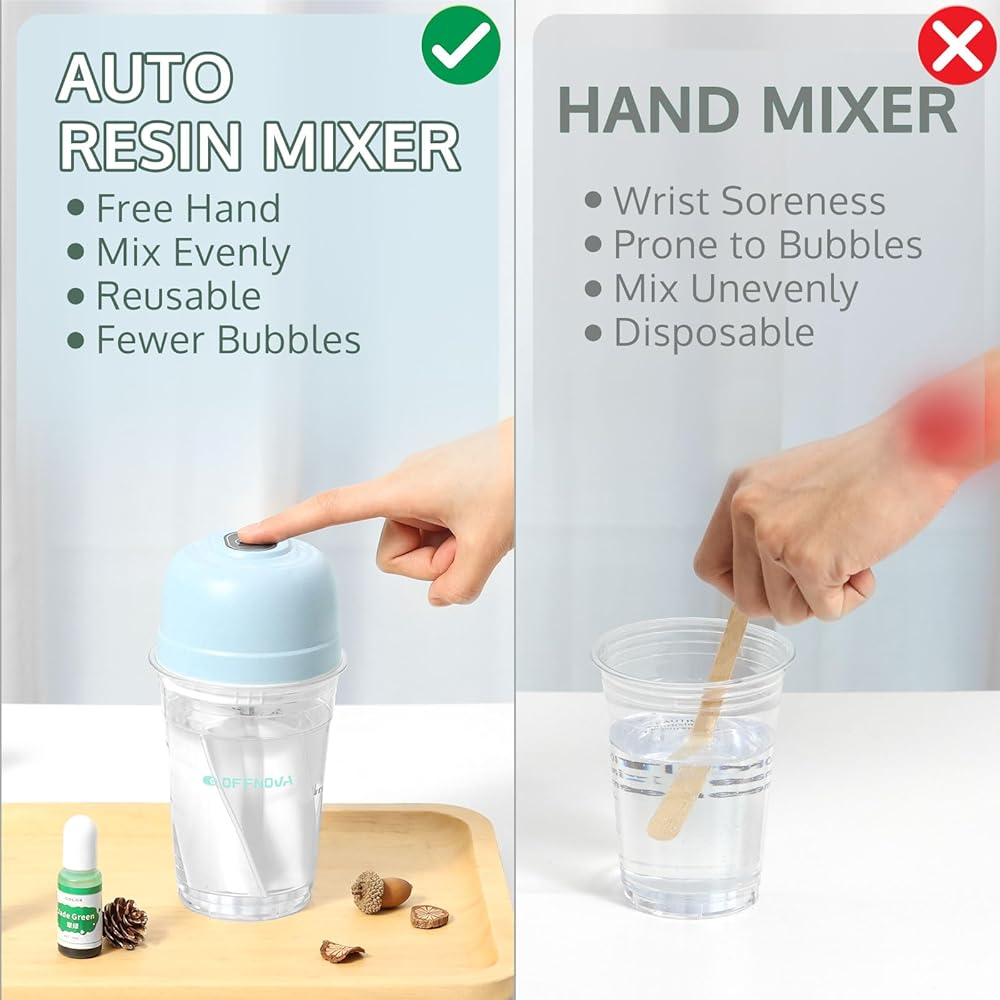 Auto Resin Mixer, Rechargeable Epoxy Mixer for Save Your Wrist, Epoxy Resin Stirrer for Resin Molds, Silicone Molds and Supplies, DIY Crafts with Measuring Cups (Mixer & Cup*10)