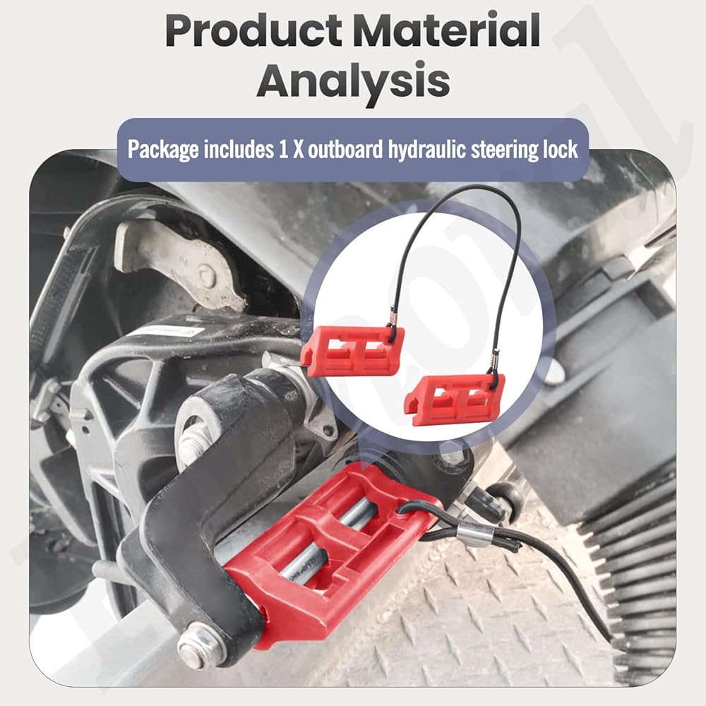 Effectively protecting your boat while out towing, the hydraulic steering lock is designed to protect your outboard motor while towing, help prevent the boat from swaying out or swinging back and forth while in transit, and help prevent unwanted movement of the hydraulic steering on the boat.