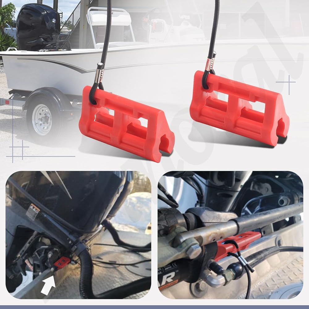 Red Hydraulic Steering Locks, Outboard Motor Steering Lock for Most Steering Cylinder Rods On Outboard Engines, In Position When Towing - Transom Savers For Outboard Motor Trailering/Transport