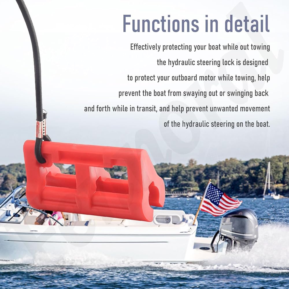 Red Hydraulic Steering Locks, Outboard Motor Steering Lock for Most Steering Cylinder Rods On Outboard Engines, in Position When Towing - Transom Savers for Outboard Motor Trailering/Transport