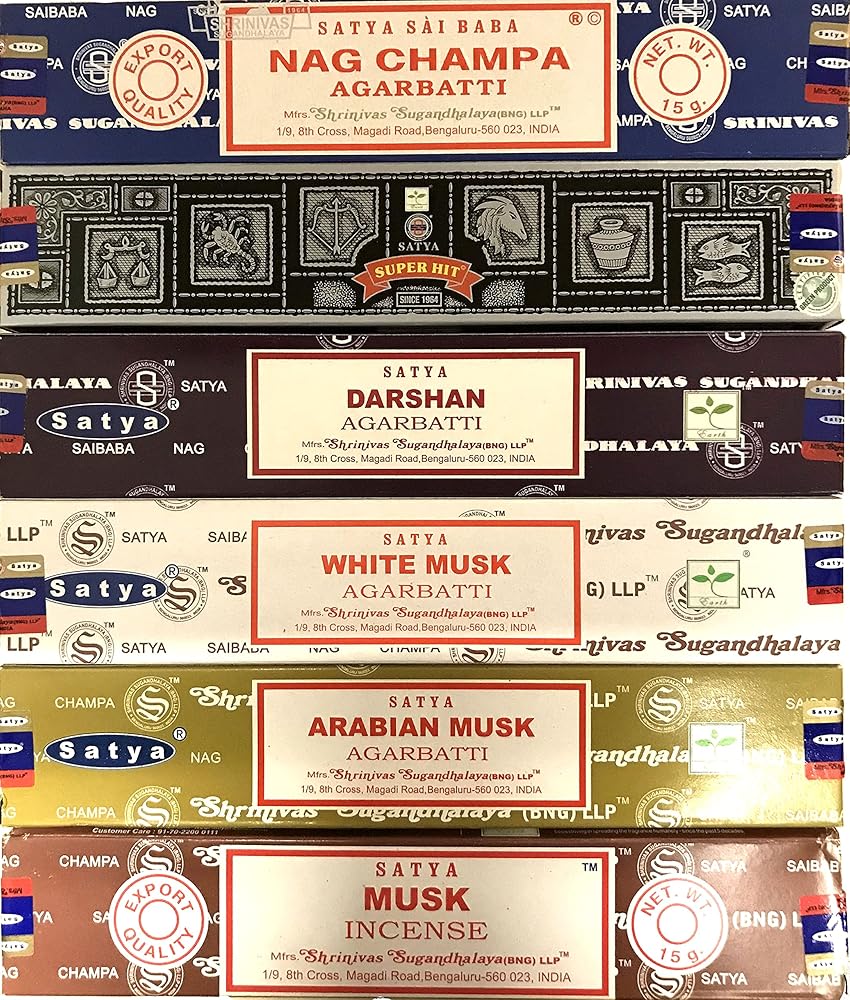 Authentic Satya brand incense hand-rolled in India using traditional methods and natural ingredients.