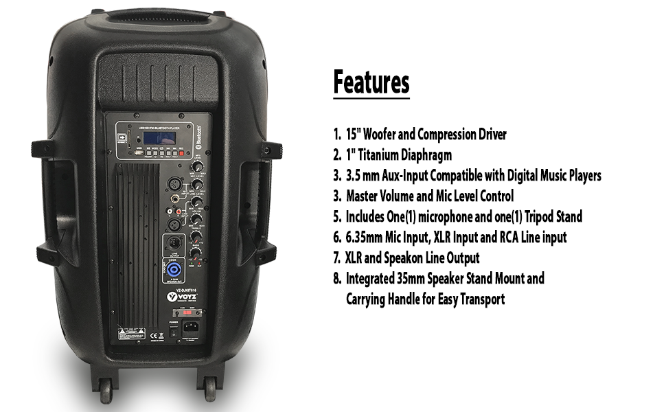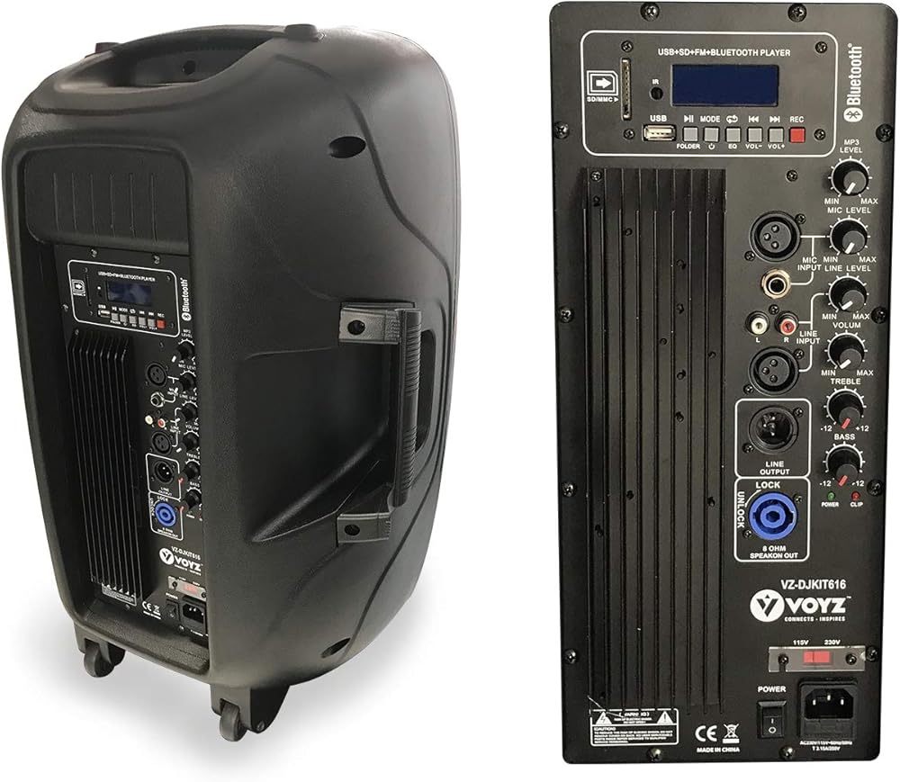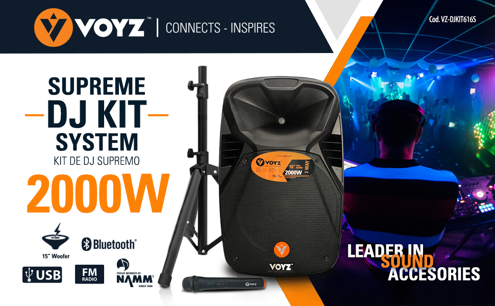 VOYZ (VZ-DJKIT616S) PA system comes equipped with a self-powered 15 inch subwoofer bass. At a powerful 2000 watt this self-powered speaker will not be drowned out even by the largest party.
