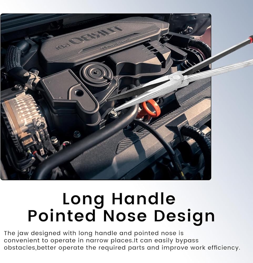 【Long Handle & Pointed Nose Design】The jaw designed with long handle and pointed nose is convenient to operate in narrow places. It can easily bypass obstacles, better operate the required parts and improve work efficiency.