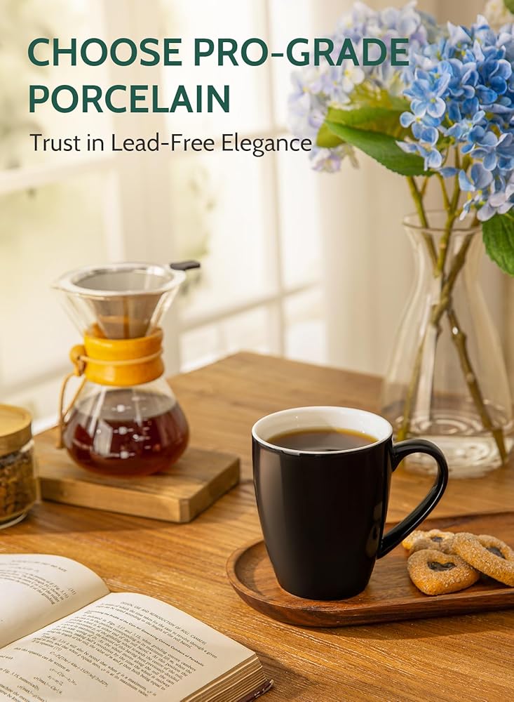 PRO-GRADE PORCELAIN FOR PEACE: Indulge in the luxury of Sweese Pro-Grade Porcelain for unparalleled taste and safety. Crafted with lead-free, natural glaze, our mugs ensure your health and well-being. Enjoy your beverages worry-free, as harmful substances won't leach into them. With its durable construction and even heating, these elegant mugs elevate your morning routine to new heights. Upgrade to porcelain for the ultimate coffee enjoyment – your brew deserves nothing less.