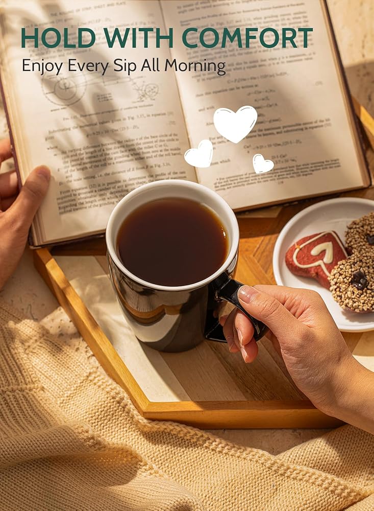 ENJOY YOUR DRINK WITH EASE: Our coffee mugs redefine comfort with a spacious design and a large handle, ensuring a cozy grip. Savor the enhanced taste of your tea or coffee as the mug sits comfortably in your hands. Crafted with ergonomic precision, our mugs offer a stylish and secure grip, the wide mouth is perfect for indulging in hot lattes, complemented by a large handle that holds 16 ounces of goodness. Choose ease and style for every sip.