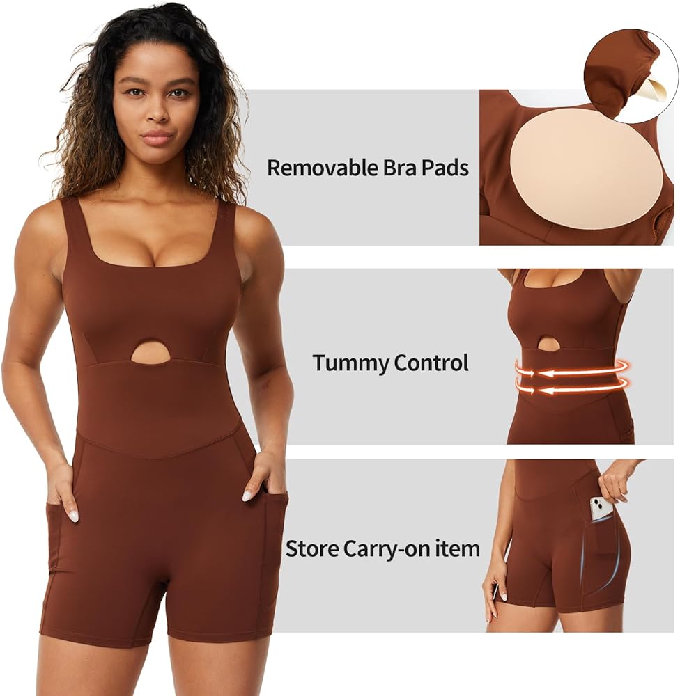 【Features】 Bodysuits jumpsuits are design with hollowed out front, removable Bra pads, square neck, elastic straps are suitable for any body type. Open back design showcases a charming back curve. This stylish onesie is your perfect choice for summer 2024.