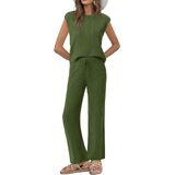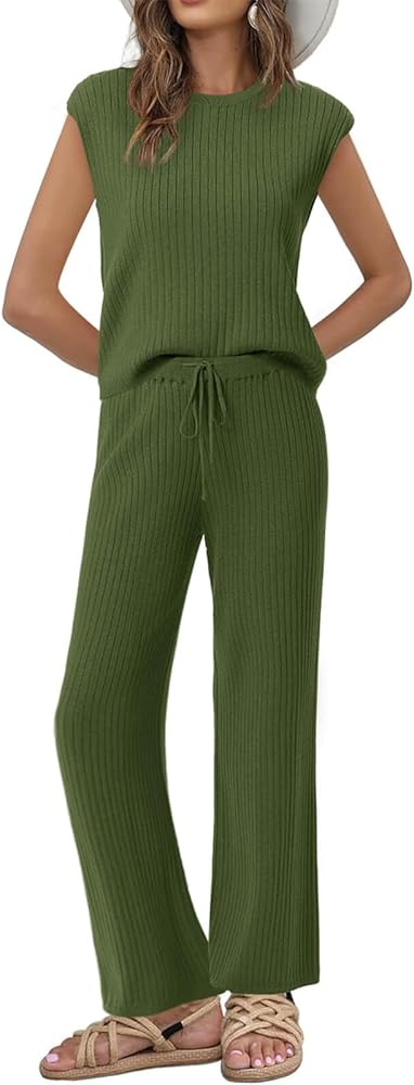 Design: 2 piece outfits for women consist of a knitted top and high waisted pants. The top as sleeveless and round neck designs, classic and fashion. Wide leg pants with drawstring design offering both style and convenience for all-day wear