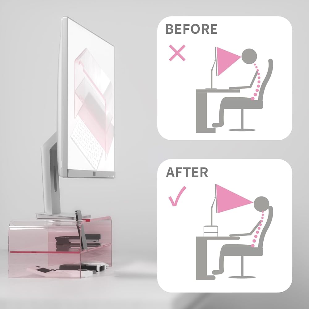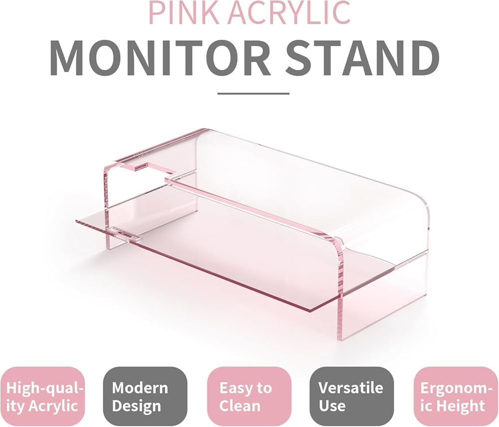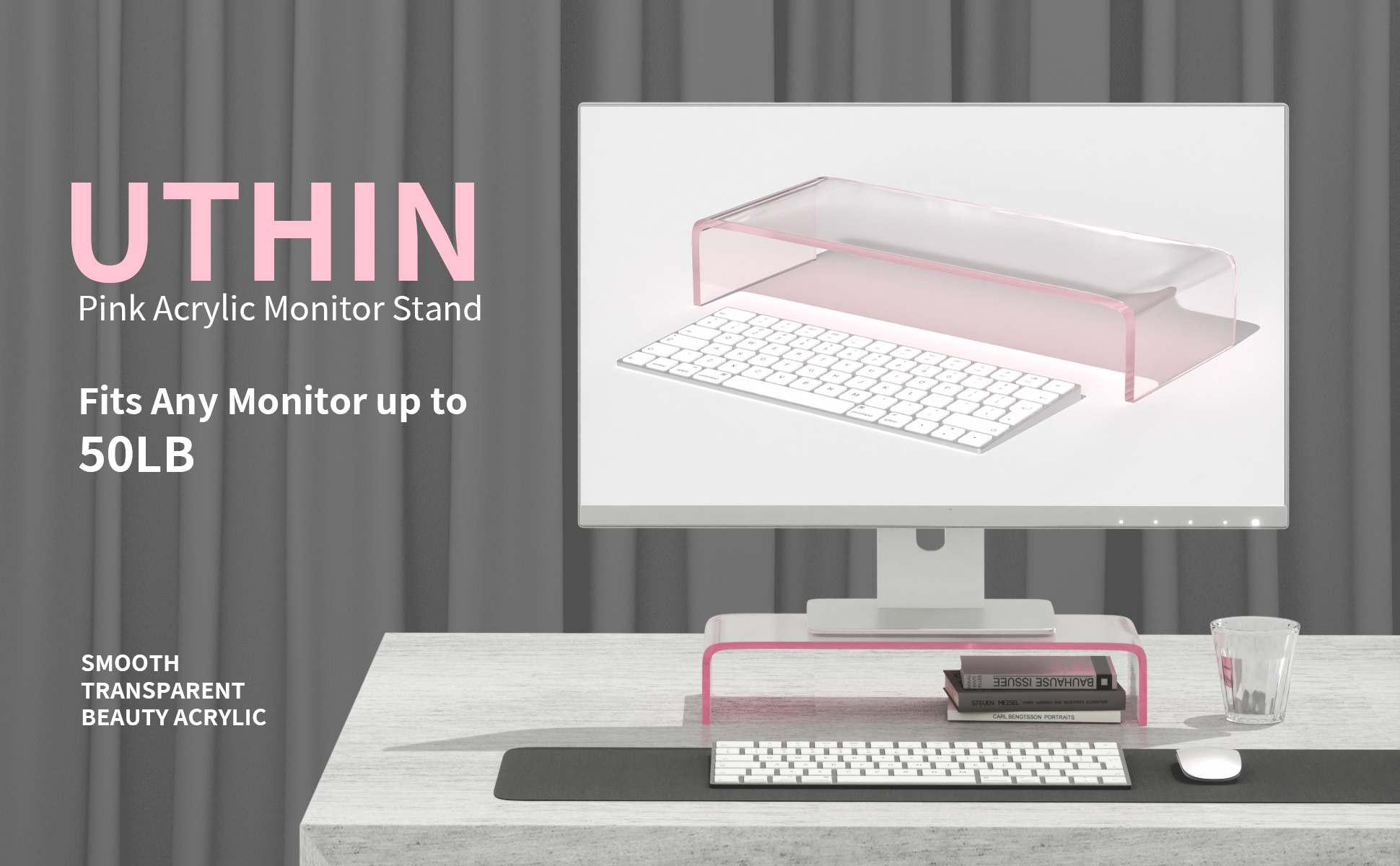 High-quality Pink Acrylic: UTHIN Acrylic monitor stand made of transparent premium Grade A pink acrylic, its provide a crystal-clear transparency. Not only use for office, also a great choice for toy stand/home decor.