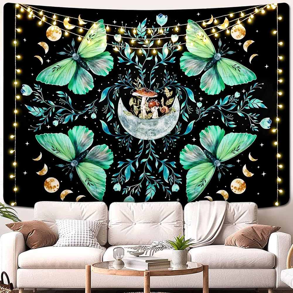 EASY USE & CARE: You can easily hang this aesthetic butterfly tapestry by using decorative tacks, push pins,etc. Easy to clean and machine washable, iron at low temperatures.