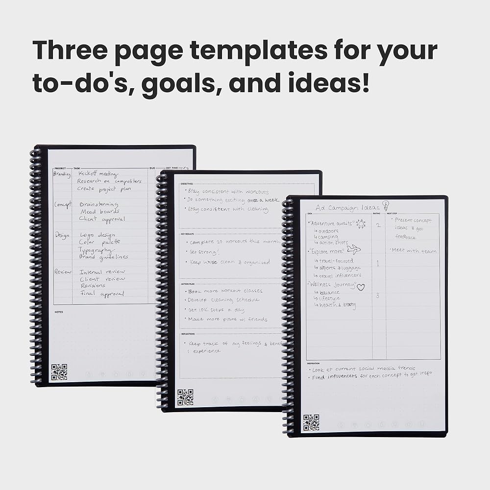 The Rocketbook Fusion Plus is the ultimate, all-in-one notebook and a more versatile and robust version of the popular and best-selling Rocketbook Fusion. The Rocketbook Fusion Plus is a notebook and planner combination that was designed for value-driven working professionals who prefer all-in-one solutions. Built with more pages than our standard Rocketbook Fusion, the Fusion Plus has 60 reusable pages (30 sheets) and is packed with 11 templates. These templates consist of Project Management, Monthly Goals, Lists, Monthly Planner, Weekly Planner, Custom Table, Meeting Notes, Lined, Dot-Grid, Graph, and Blank layouts. Our signature, reusable paper allows you to write smoothly with the included Pilot FriXon pen, then magically wipe note clean with a damp cloth and reuse again and again. Plus, the free Rocketbook app is compatible with the Fusion Plus so that you can blast your notes, schedule, to-do lists, etc. to the cloud for optimal organization.