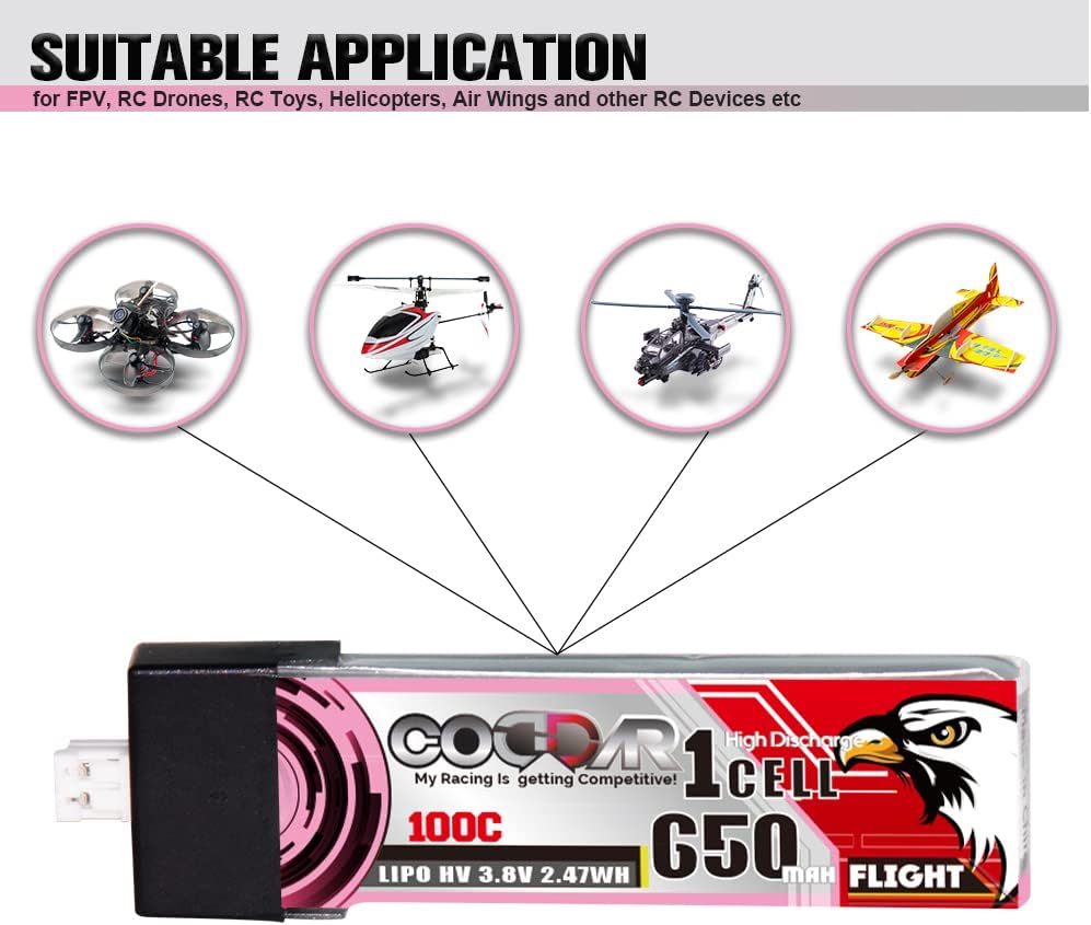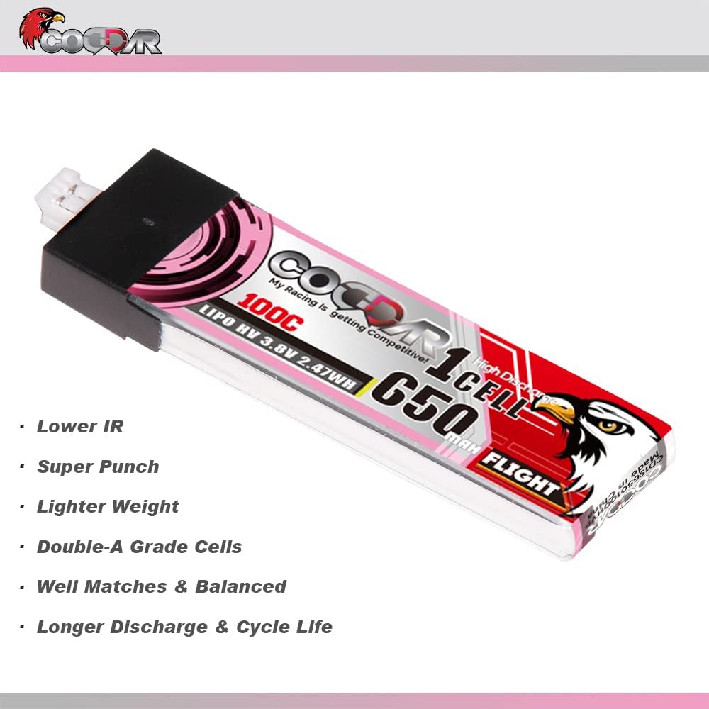 6 Packs CODDAR 650mAh 1S 3.8V 100C HV LiPo Battery with JST-PH 2.0 Connector for CD1S650100HVP CD1S650100HVP