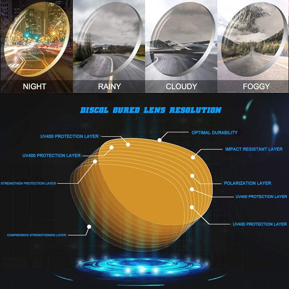 Polarized night vision lens could filter out most of the glare at night to reduce eye strain and improve color clarity. Allow you to have clearer vision when driving at night or cloudy, rainy days, keep your safer during the journey.