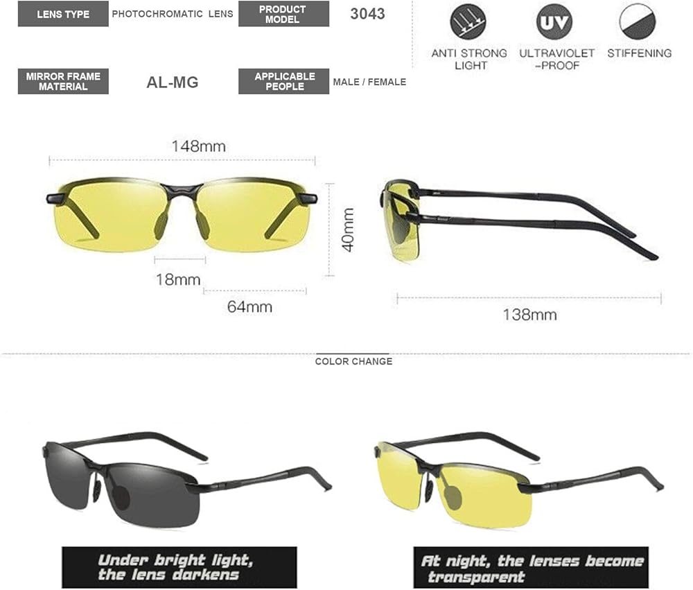 ✔1 X Photochromic Polarized Sunglasses