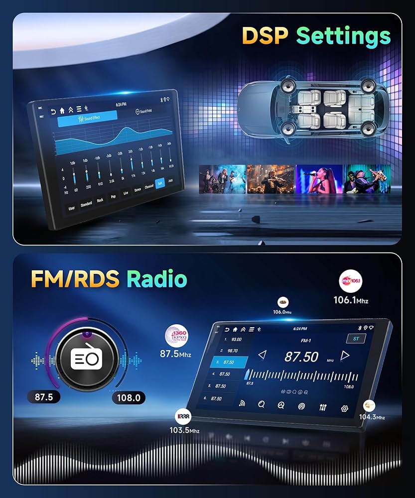 🚙【Multiple UI Themes & Customize Home Page APPs 】This Bluetooth radio supports split-screen functionality, allowing you to use two apps simultaneously and customize the size and position of each app. Switching between apps is made easy with a simple swipe gesture. Additionally, you can choose from different user interface themes for a personalized look. Furthermore, it offers optional home page app display and the ability to switch apps by long-pressing.