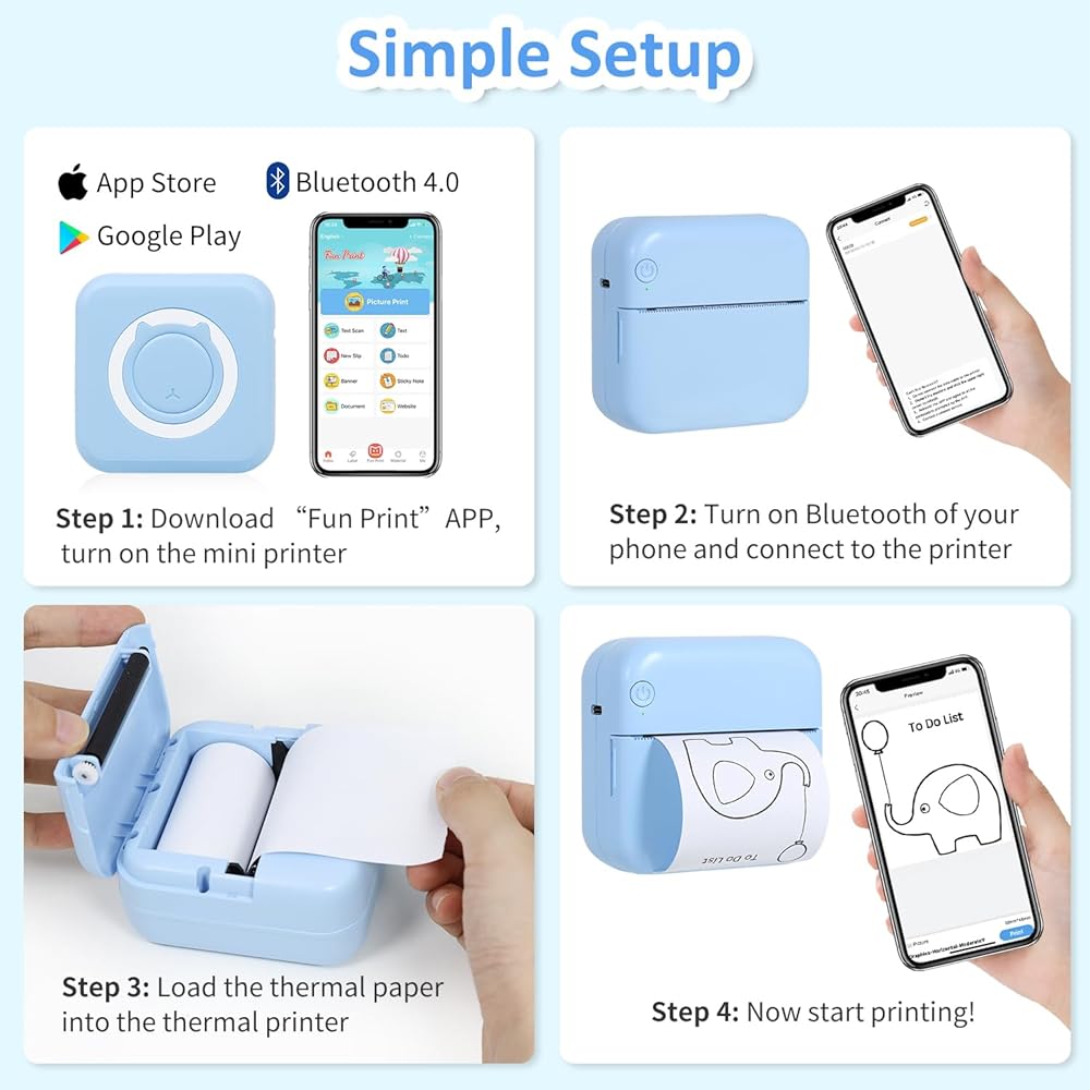【Wonderful Gift】The mini thermal printer is compact but powerful, easy to operate, and versatile for learning, education, travel, gaming and more. Make it a great gift and surprise your family, friends, colleagues, etc.