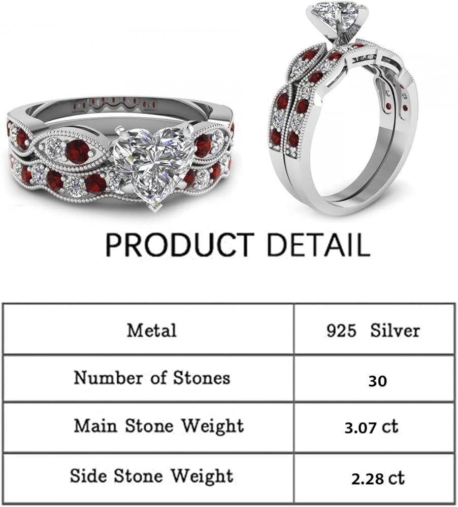 【Classical Design】:Celebrate your love with this exquisite wedding set. Beautifully crafted in sterling silver, this entrancing design features a shimmering heart cut stone at the center, while the shank and matching band are adorned with alternating blue stones and shimmering white stones arranged between intricate milgrain borders. On your wedding day, seal your vows and celebrate your commitment with this beautiful ring set.