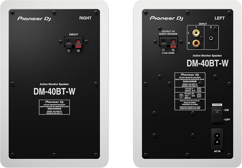Create a versatile home set-up that can deliver a rich, balanced sound for producing and DJing. These compact desktop speakers have been designed using professional speaker technology and effortlessly connect to all your Bluetooth wireless devices. The dm-40bt comes in black or White and retains its groove technology from the highly-reputed DM-40 Active monitor speakers. Expect a smooth bass response, A wide sweet spot enabled by Deco technology, Clear audio quality and rich bass sound all at the same time. The dm-40bt speakers are sold as a pair. Specs: type: 2-Way bass reflex, Active monitor speakers tweeter: ¾-inch soft dome woofer: 4-inch fiberglass What's in the box: dm-40bt x 2, Power cord, 2 m speaker Cable (for left/right channel connection), audio converter cable (3. 5 mm stereo mini plug to RCA), bottom cushion x 8, operating instructions Dimensions (W x H x D): left Ch: 146 x 227 x 223 mm (5. 7 x 8. 9 x 8. 7 in. ) right Ch: 146 x 227 x 210 mm (5. 7 x 8. 9 x 8. 3 in. ) Weight: left Ch: 2. 7 kg (6 lbs. ) right Ch: 2. 2 kg (4. 8 lbs. ) amplifier output: Class A/B amp: 2 x 21 W/4 Ω frequency range: 70 - 30000 Hz Impedance: 10 kω inputs: 1 line (RCA), 1 line (mini-jack) outputs: 1 headphone monitor (mini-jack) Bluetooth: output: Bluetooth specifications Class 2, Supported codec: SBC, a AC, Qualcomm apt, Qualcomm apt Low Latency, version: Bluetooth specifications ver. 4. 2