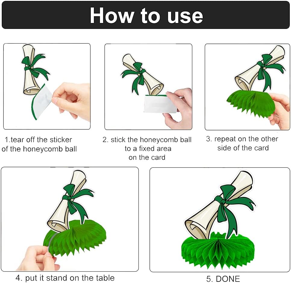 First, tear off the sticker of the honeycomb ball, and then stick the honeycomb ball to a fixed area on the card. And then, repeat on the other side of the card, finally put it stand on the table. It's so easy that you can save a lot of time.