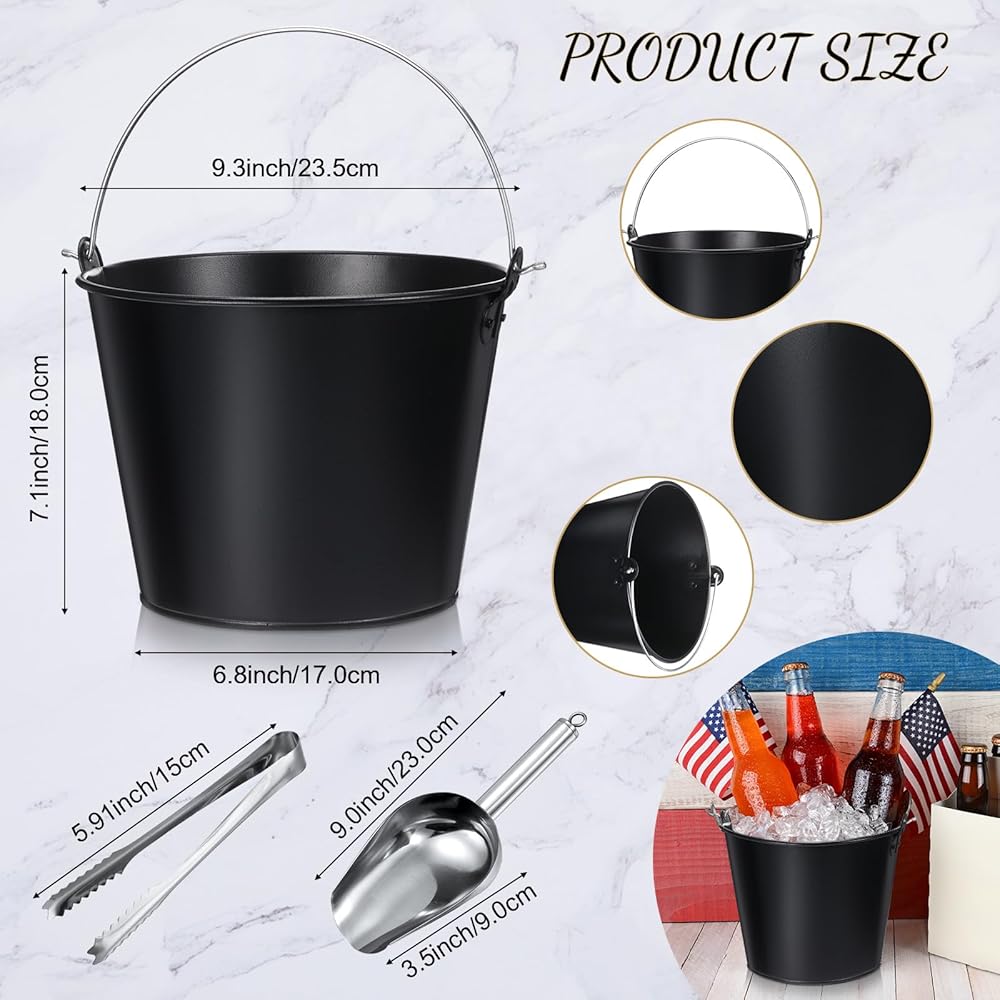 Reliable Material: our water bucket is made of metal, with a tin clad layer, and its inside is waterproof, durable and sturdy, not easy to leak or break; The ice scoop and mini tong are made of stainless steel, They are nice combinations to make you easy to carry and transport beverages