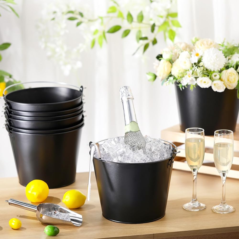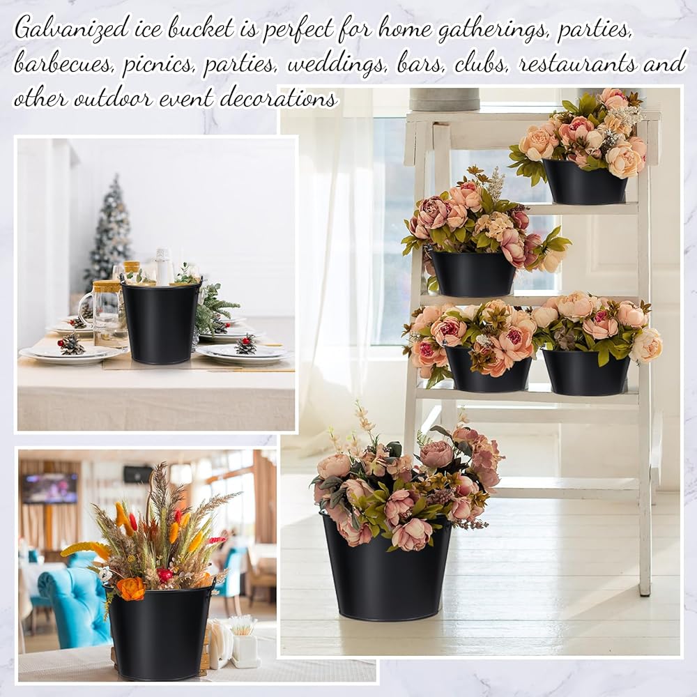 Extensive Usage in Daily Life: our metal buckets are ideal containers for holding beer, soft drinks and champagne, act as flower pots for planting, also decorations for cut flowers, table decorations, party decorations and other art and craft projects