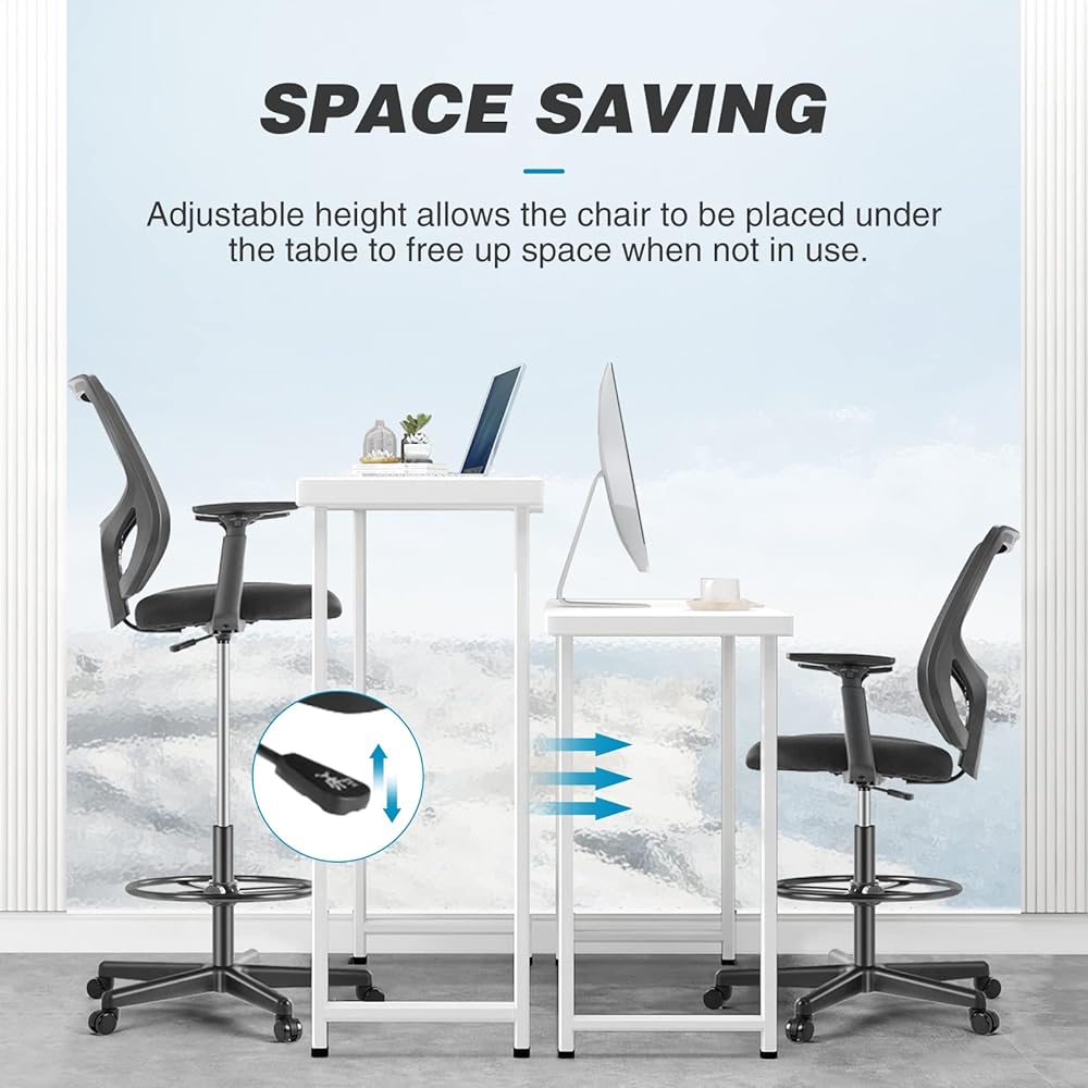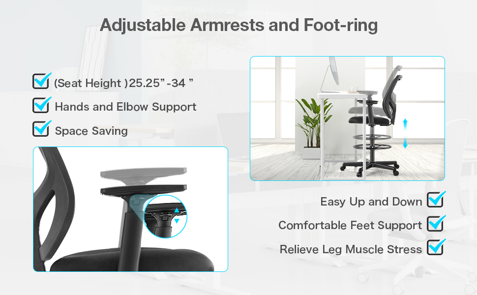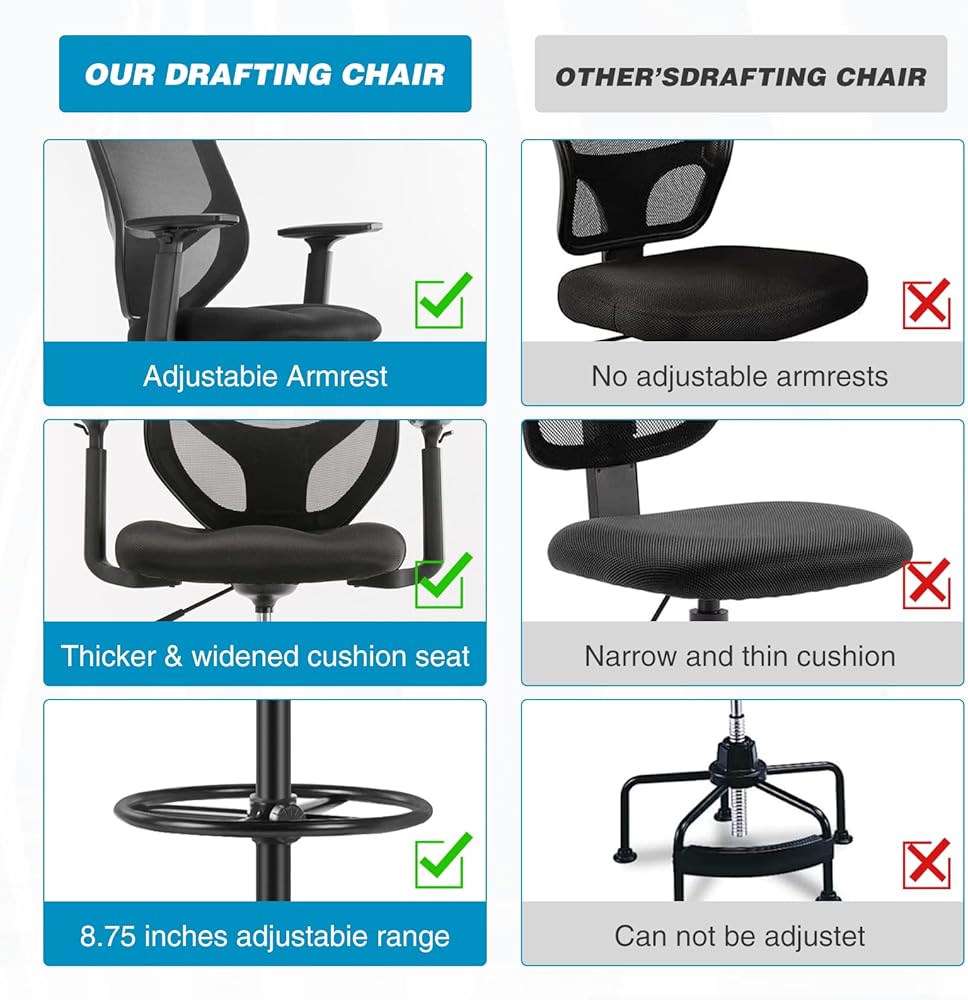 🔥Ergonomic Tall Office Chair – Our ergonomic drafting chair is designed to provide maximum sitting comfort. The curve of the lumbar support fits the natural curvature of human spine, helping you to relieve pressure on the back and maintain better posture, which is pretty suitable for people typing at the desk for long hours.