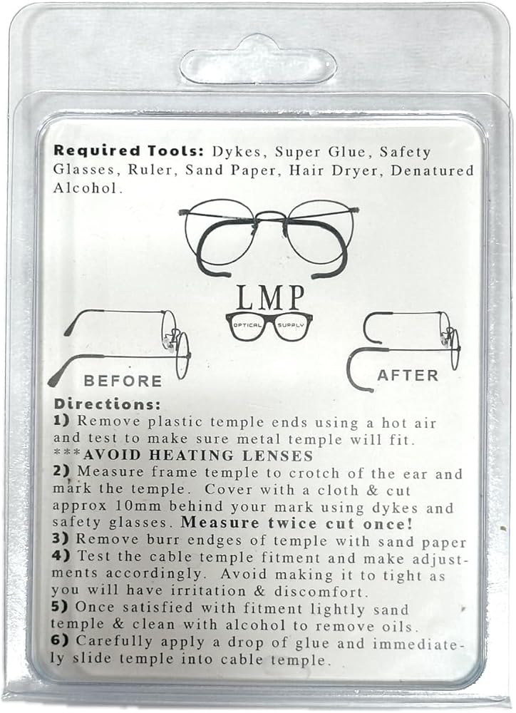 LMP Optical Supply Metal Eyeglasses Cable Temple Coversion Soft Rubber Includes Instructions | 1 Pair |