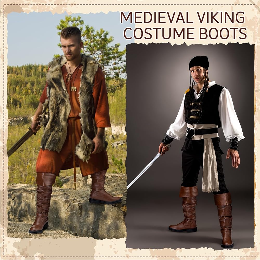 Medieval Style: you will receive 1 pair of Halloween pirate boots, with which you can be the focus of the crowd; These boots are designed in the medieval style, making them an ideal costume for Halloween party