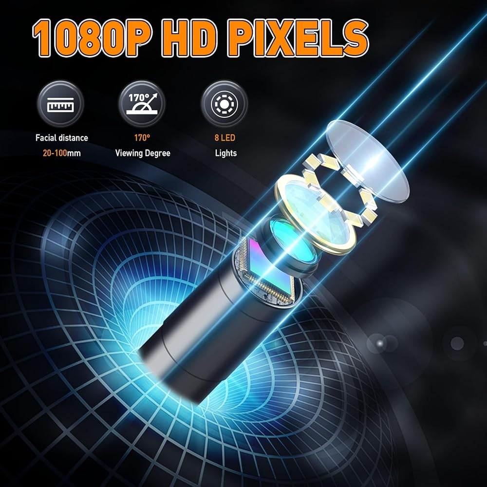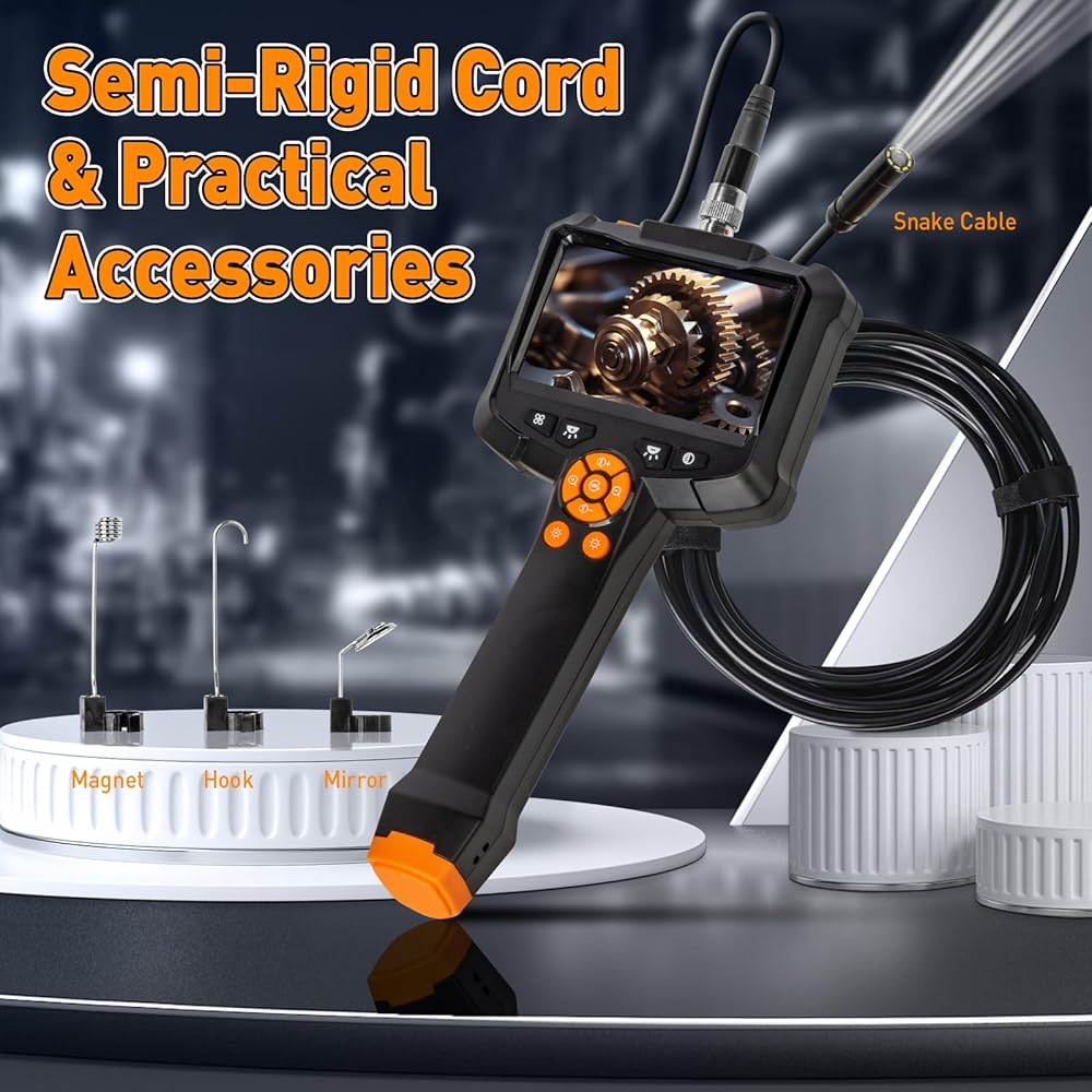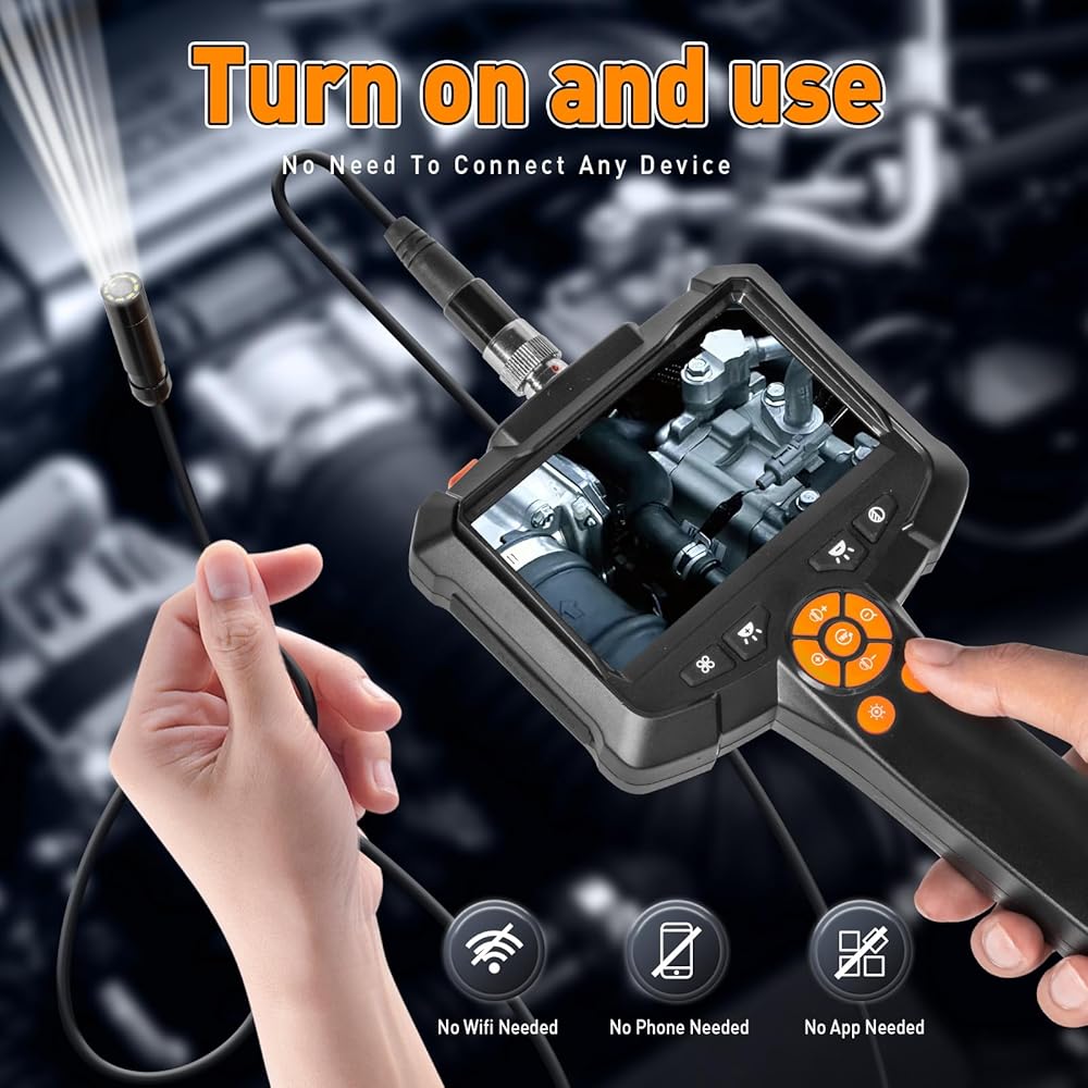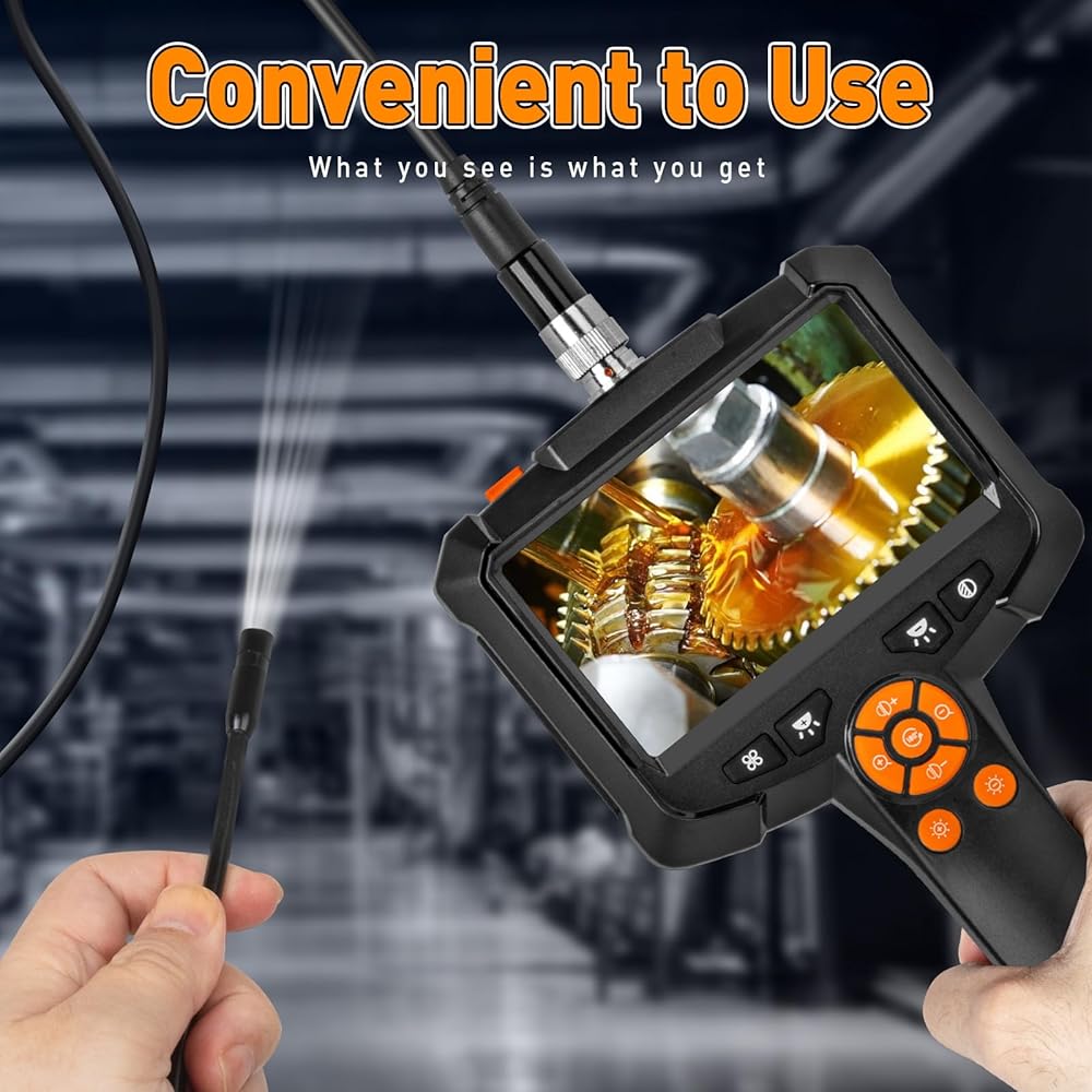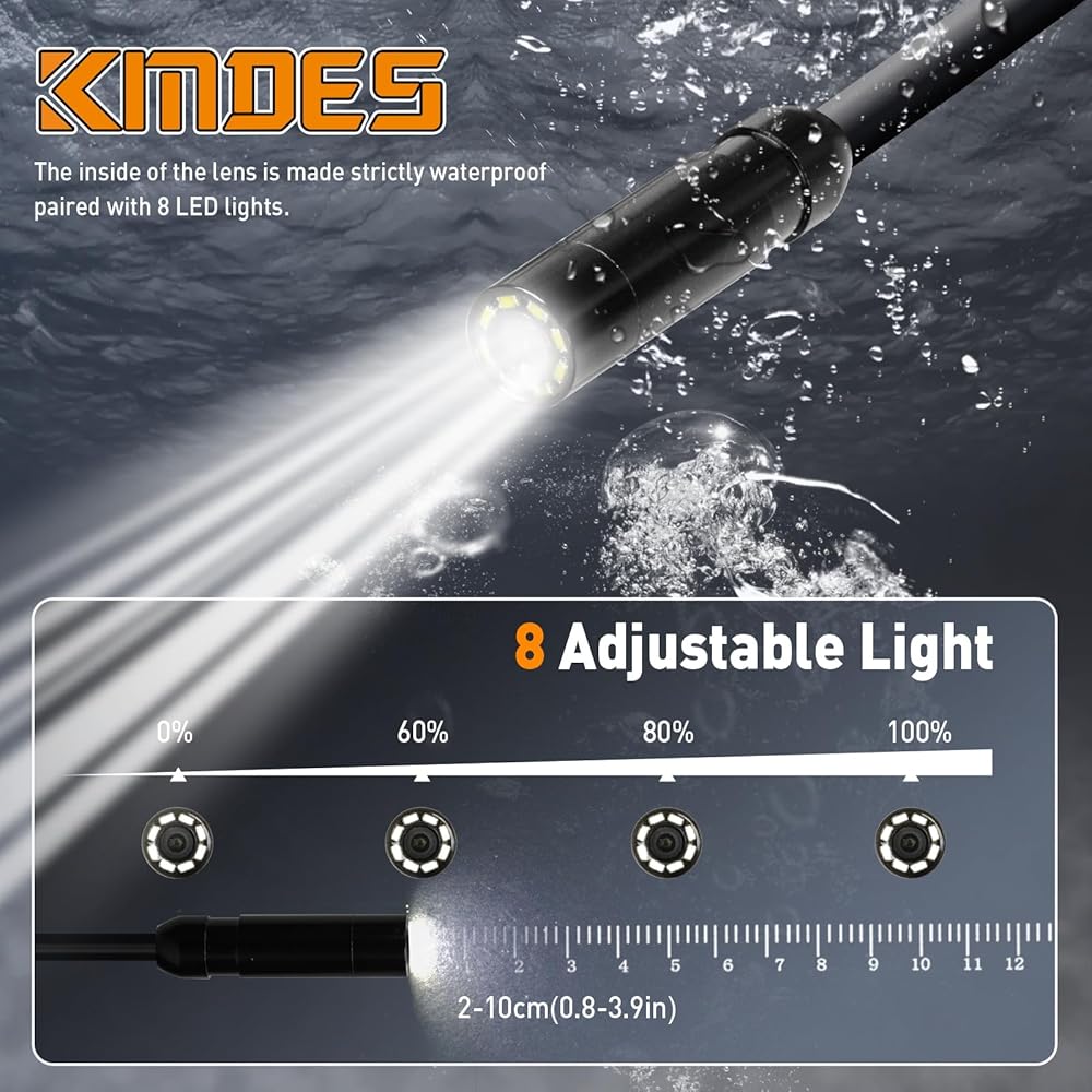 The KMDES borescope endoscope camera enhances sharp contrast and clarity, with the ability to gradually increase the contrast from weakened to normal to enhanced, enabling the recovery of intricate details with precision. This advanced feature ensures that users can achieve the highest level of image quality for accurate inspections. Moreover, the endoscope camera offers the option to enlarge images by 1.0-2.0 times, allowing for precise and detailed inspection, while the 180-degree screen rotation facilitates effortless angle adjustment, providing an enhanced observation experience. The gradual increase in LED light brightness from 0-100% further enhances visibility, ensuring clear imaging in various working conditions. Featuring the flexibility to switch between black and white in movies, this borescope camera offers versatility for different inspection scenarios, making it a valuable asset for professionals in automotive maintenance, household repairs, industrial inspections, and more. With its durable construction and reliable performance, the KMDES Borescope Endoscope Camera with Light and Adjustable Brightness and Contrast is a must-have tool for anyone seeking precision and efficiency in their inspection tasks.