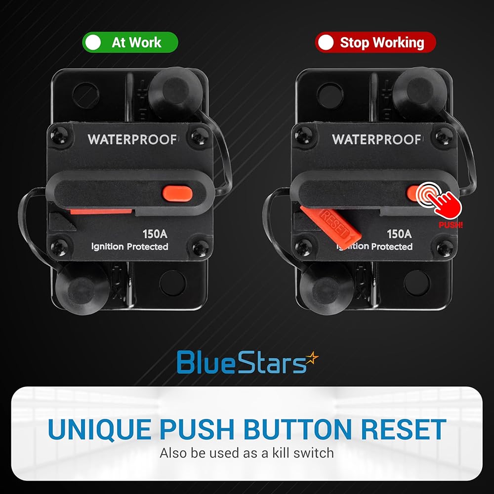 ✅ QUICKLY PROTECT AGAINST OVERLOADING: Our 150Amp Circuit Breaker acts as a safety device that instantly interrupts the over-current flow of electricity as a result of high power draw, short-circuits, wiring mistakes, equipment faults, preventing damage caused to the vehicles or even electrical explosions. It can also help disconnect power to a circuit for maintenance or repair to protect you from the risk of electrical shock.