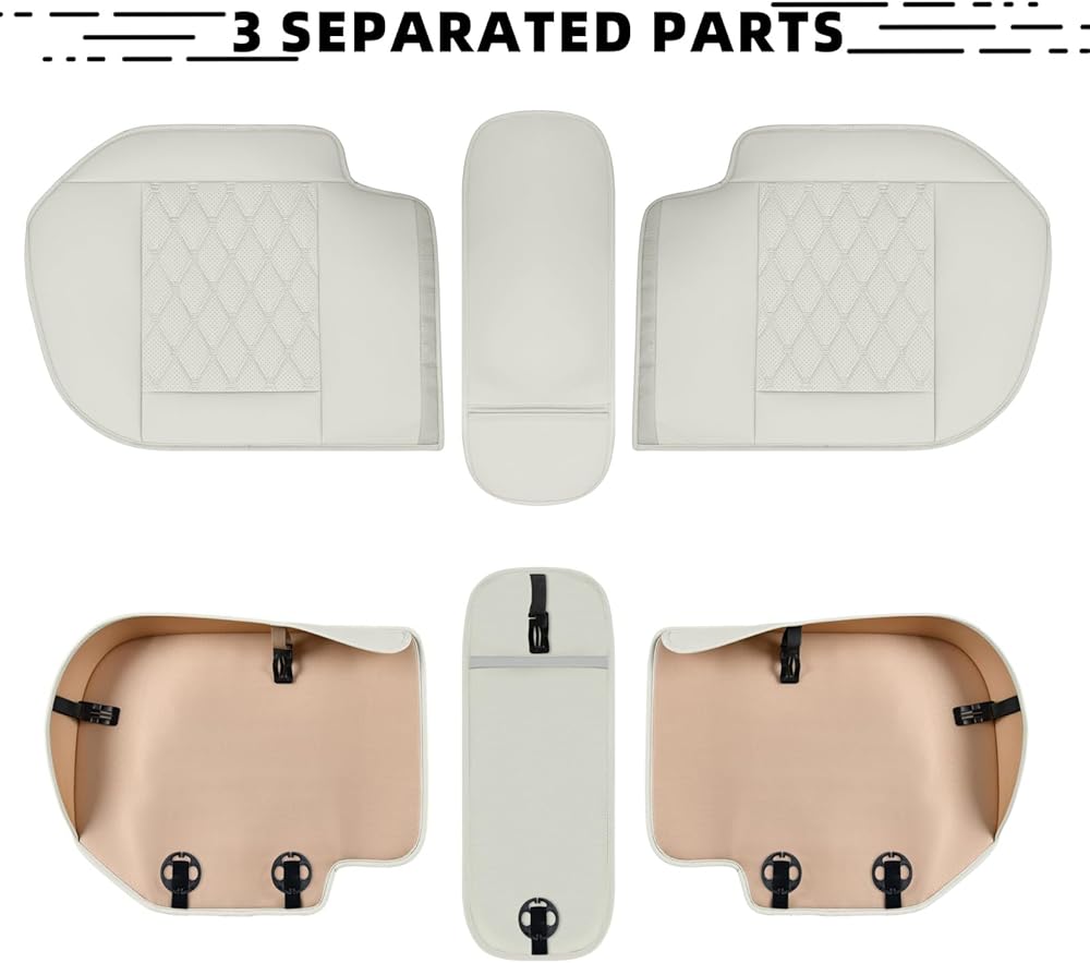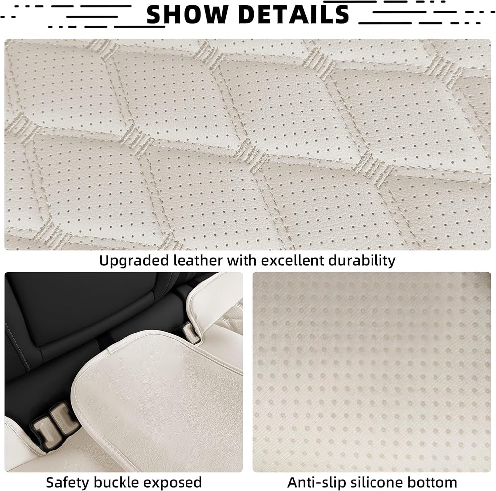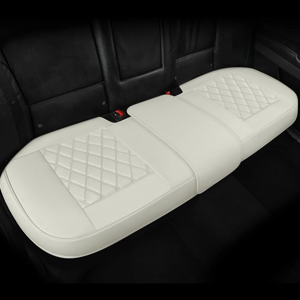2 Pack Luxury Leather Front Car Seat Covers, Bottom Seat Covers for Cars, Anti-Slip and Wrap Around The Bottom, for Most Vehicles, Sedan, Truck, SUV (Rear-Beige White)