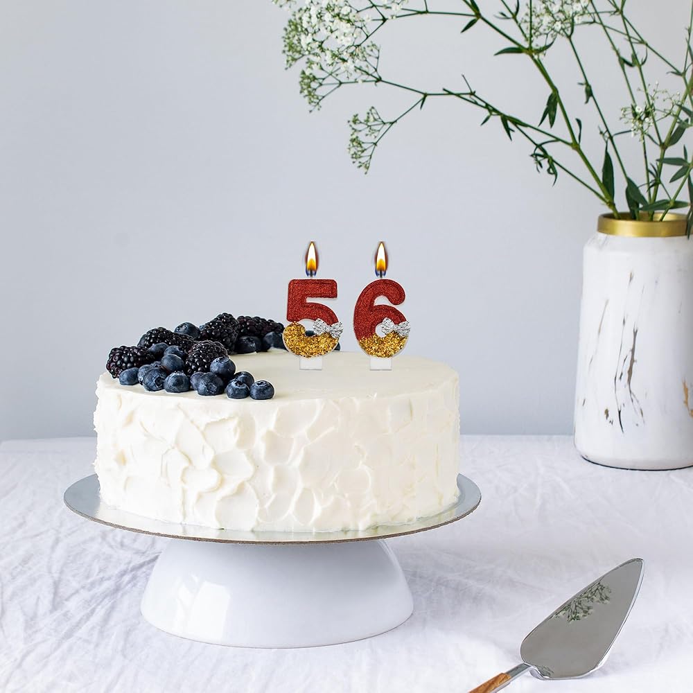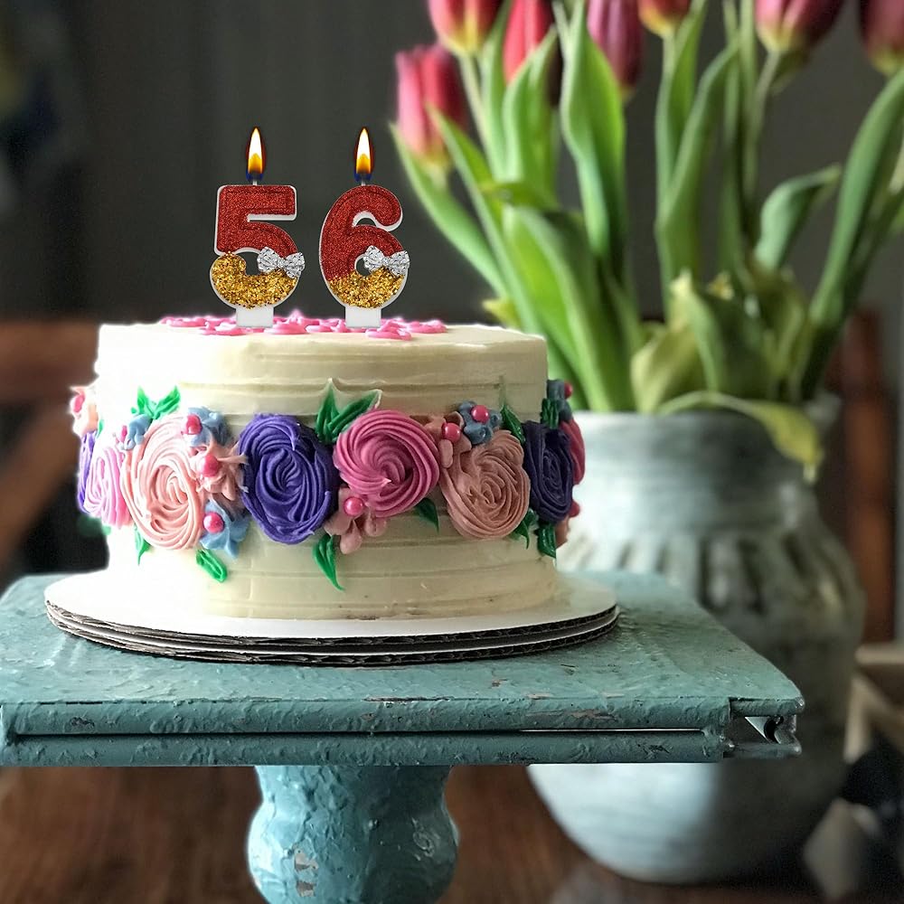 Celebrate milestones with our eye-catching "56th 65th Birthday Candles" set! Crafted with precision, these candles feature the numbers 5 and 6, perfect for commemorating those special 56th or 65th birthdays