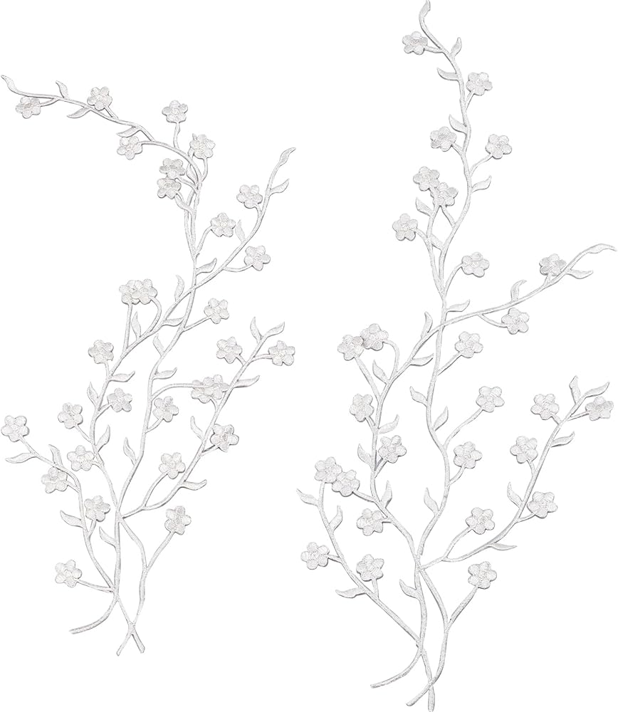 CRASPIRE Plum Blossom Applique Flower Silver Embroidery Patches Applique Fabric Sticker on Blankets Cloth Patches Costume Accessories for Sewing Repair Embroidered Craft Decorationn