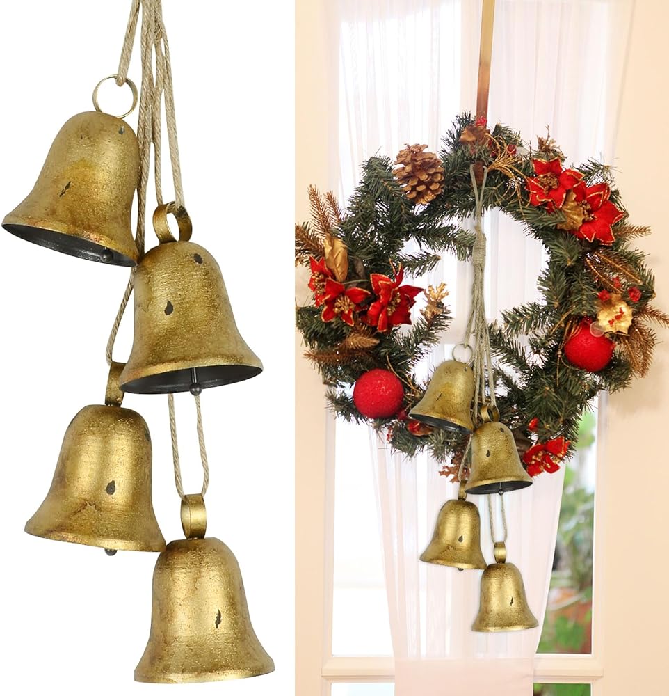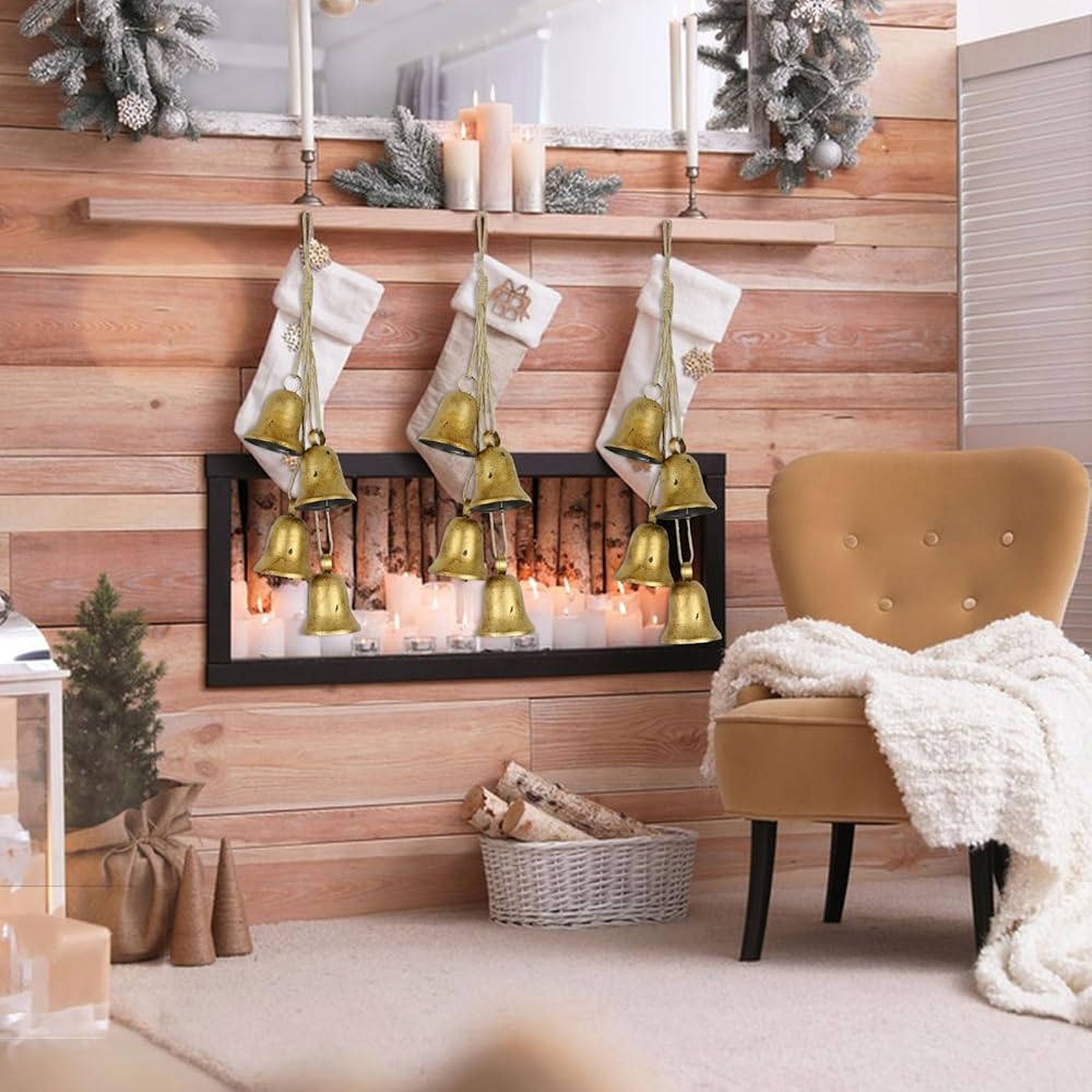 【HIGH-QUALITY CRAFTSMANSHIP】This cowbell are made of high quality aluminum and durable nylon braided rope. The structure is sturdy and durable, waterproof and windproof. Easy to clean, dustproof and waterproof, not easy to rust or fade,and it can be used for a long time. This gold cowbell is on the niche side and can be hung anywhere to add Christmas spirit and cheer to your home.