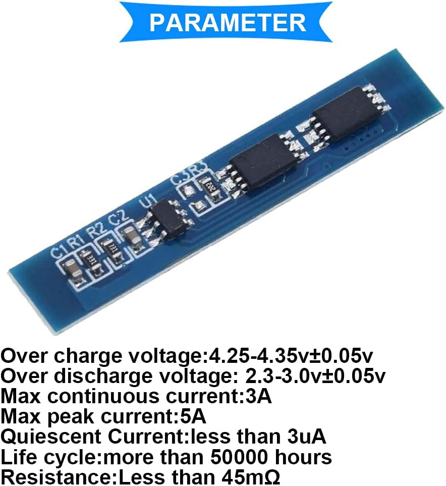 Protection: Overcharge Protection, Overdischarge Protection, Short Circuit Protection, Overcurrent Protection.