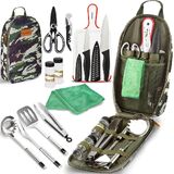 MULTIPURPOSE: The trendy kit can be used for multiple applications, perfect for concerts, sporting events, hiking, boat rides, mountaineering and BBQ's. The weather retardant the travel utensil kit is the perfect camp kitchen accessory, and it holds all your essential outdoor cooking utensils.