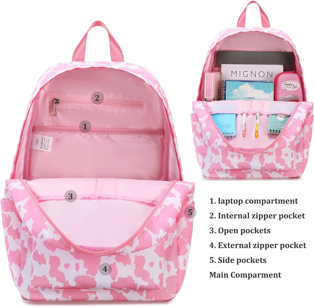 ORGANIZATION MADE EASY – The girls backpack main compartment with two-way SBS zipper closure; designed with 1 laptop compartment, 2 external zipper pocket, 1 internal zipper pocket, 2 internal open pouches and pen pockets, 2 big side pocket. Reasonable design and spacious capacity can meets daily using.