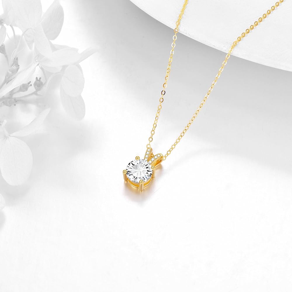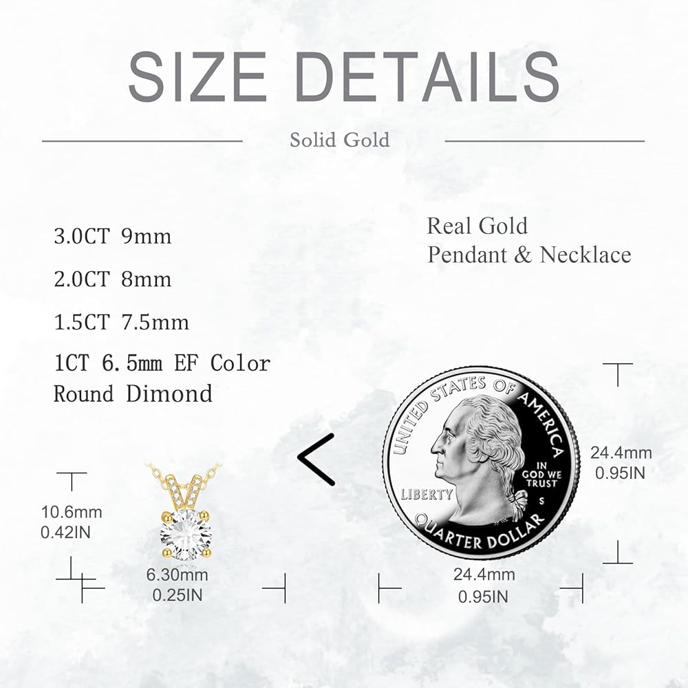 • ❤Material❤ -- This solid gold necklace are making of real 14k gold with 3 Moissanite(8mm 2CT*1, 6.5mm 1CT*2), which has 58.5% Real Gold, NOT just a covering of gold-plated. Won't tarnish, nickel-free, hypoallergenic.Especially for those with sensitive skin.