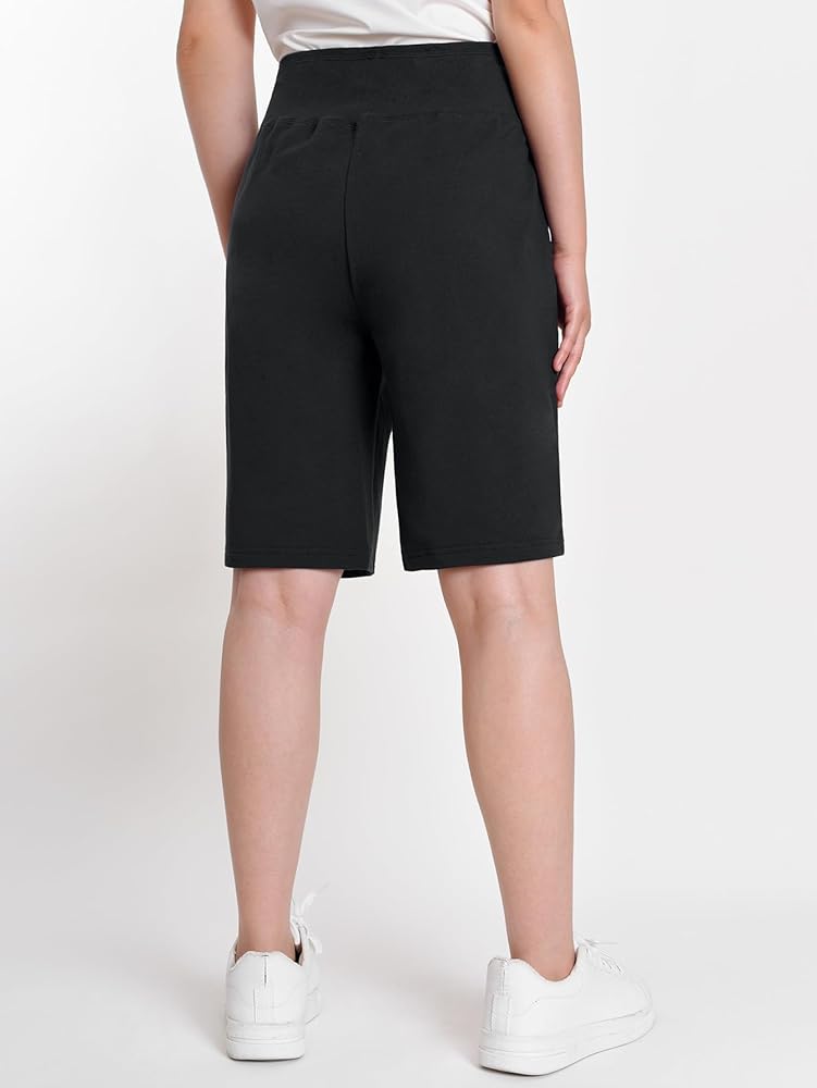 Made of soft cotton fabric, this high waisted long shorts is a versatile summer item for walking, running, doing workout, playing pickleball, lounging around the house etc