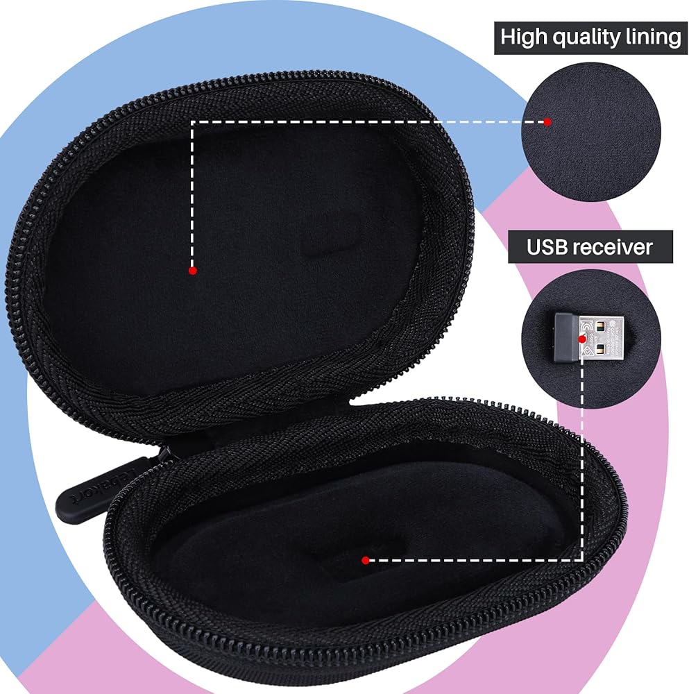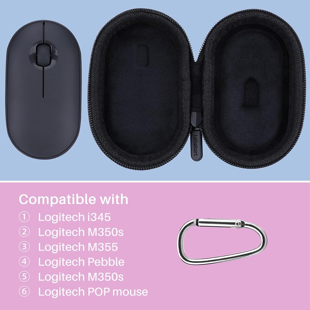Tailored Design: The Lebakort wireless mouse case is meticulously designed for Logitech Pebble 2 M350s slim wireless mouse, ensuring a perfect fit. The Pebble mouse case is accommodate not only the Logitech Pebble 2 M350s but also the Logitech Pebble M350 M355 i345 and Logitech POP slim wireless mouse, Its lower compartment features a dedicated groove designed to snugly hold the USB receiver, preventing it from getting misplaced or damaged during transit.