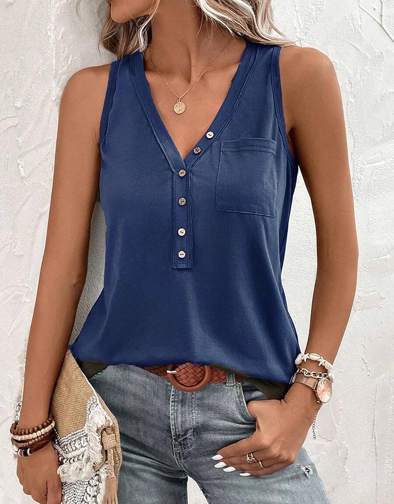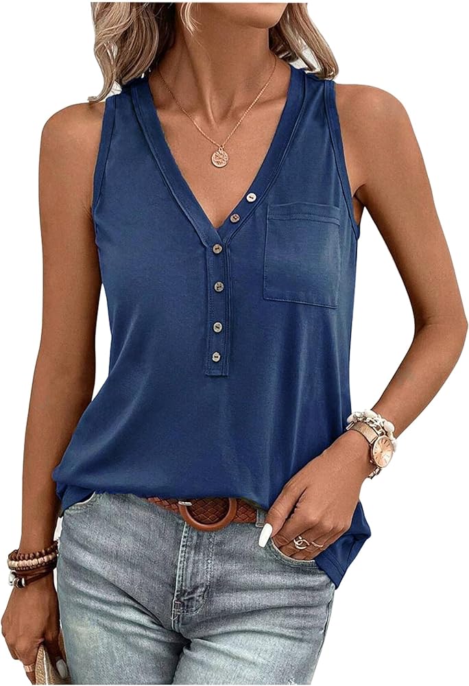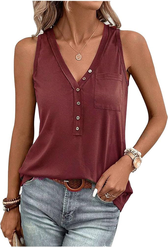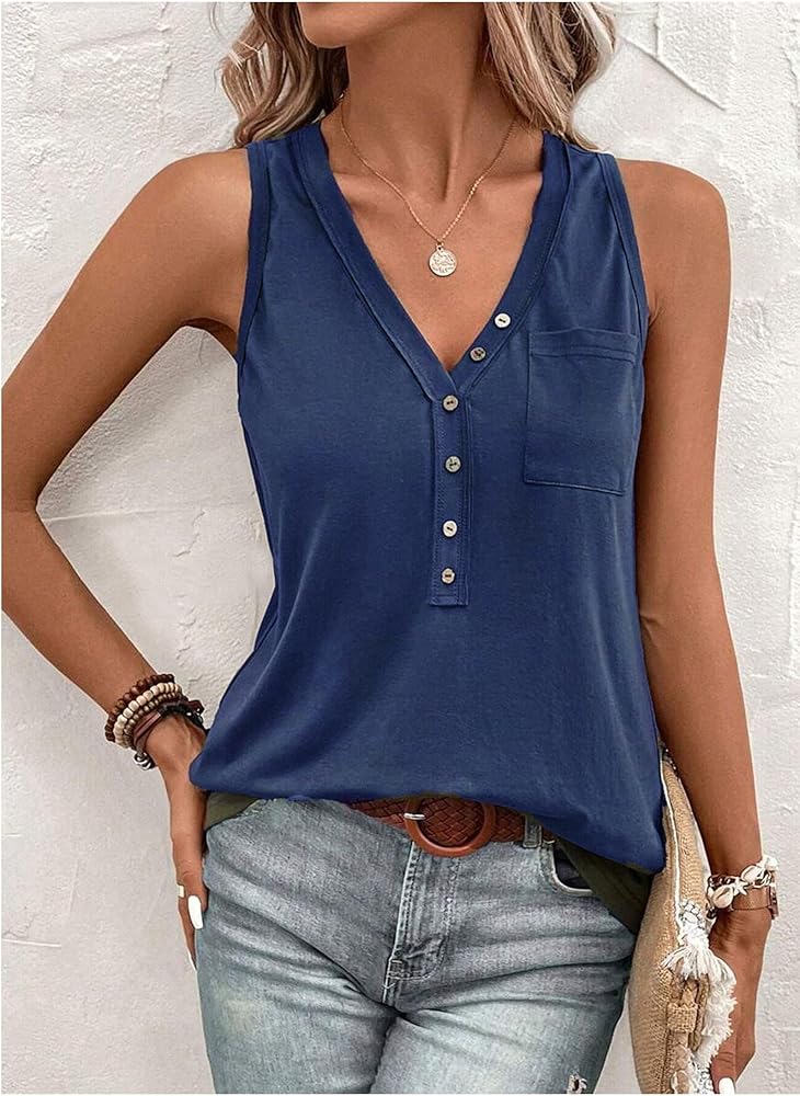 ♥ Sexy deep v neck tank tops, sleeveless tops with a cute front pocket. Fashion button down henley shirts feature a loose-fit style. Notice: Buttons do not open