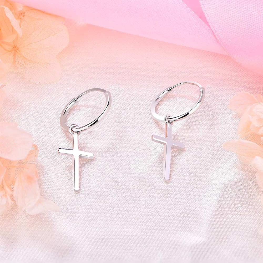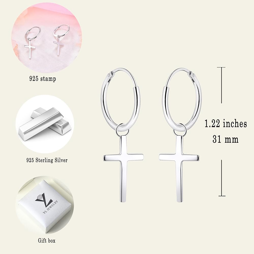YL Hoop Earrings 925 Sterling Silver Polished Star/Cross/Moon Circle Endless Earrings 15mm Dangle Hoops Diameter Jewelry