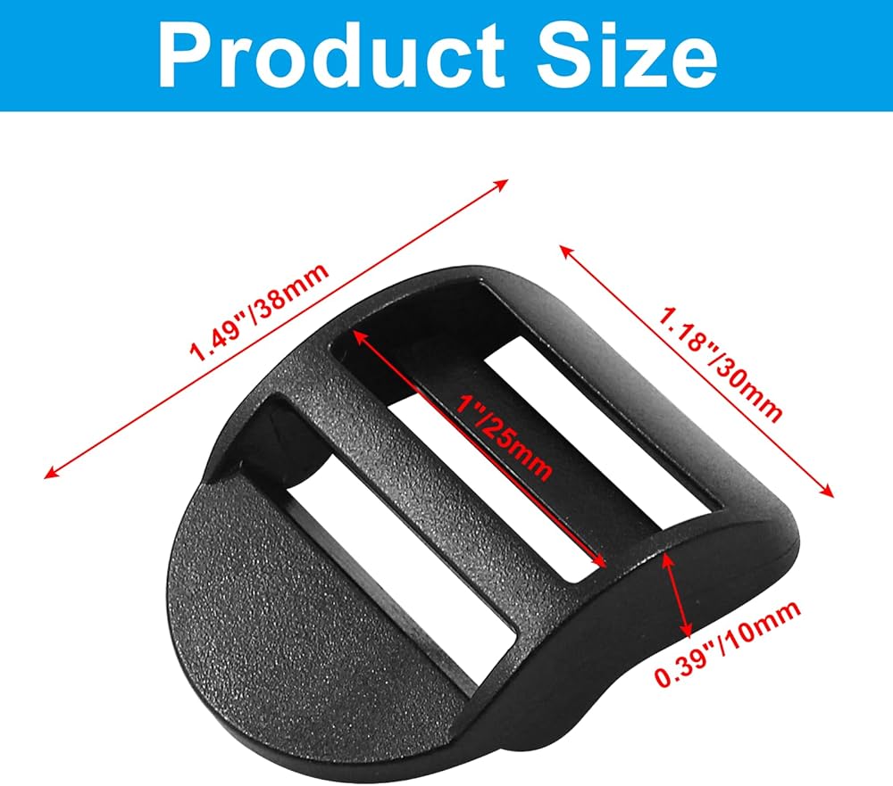 - Size: Each ladder lock buckle measures approximately 38mmx30mmx10mm/1.49"x1.18"x0.39" (L*W*H). Suitable for 1 inch webbing or backstrap.