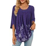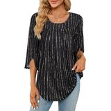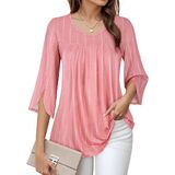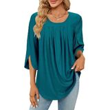 Pleated Front: Women's 3/4 sleeve tops with pleats on the front, which is flattering and flowing to hide the stomach without the appearance of being pregnant