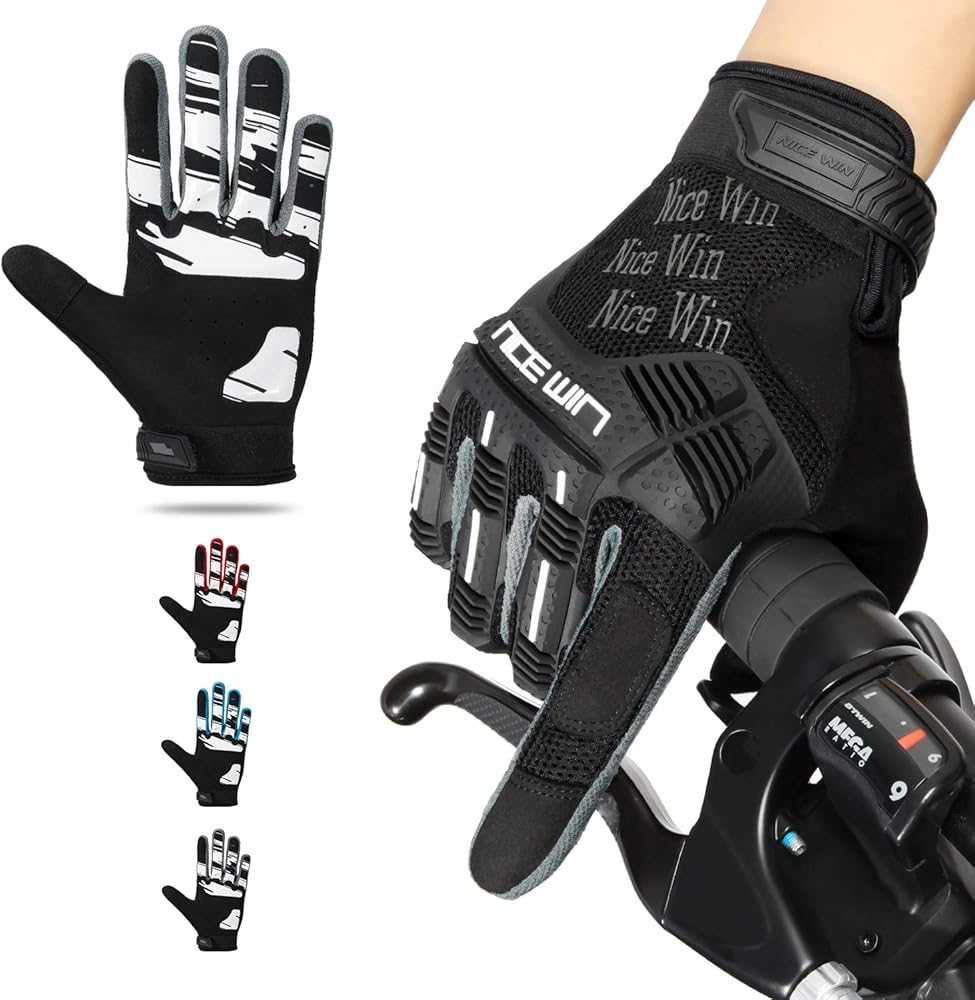 NICEWIN Cycling Gloves for Men Full Finger Riding Gloves Anti-Slip Breathable Mountain Bike Gloves Bicycle Riding Gloves with Knuckles Protection Gel Pad