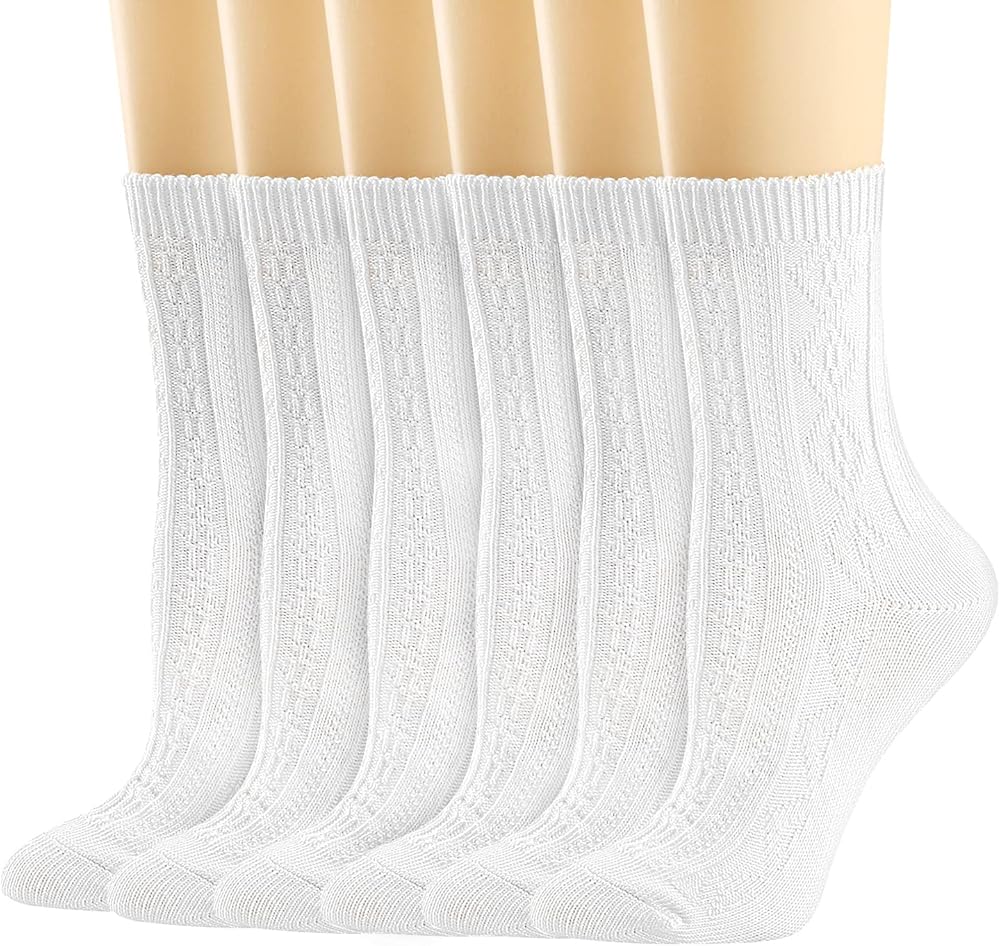 Mcool Mary Women's Frilly Socks,Casual Cute Ankle Socks Breathable Cotton Lace Crew Socks for Women 6 Pack